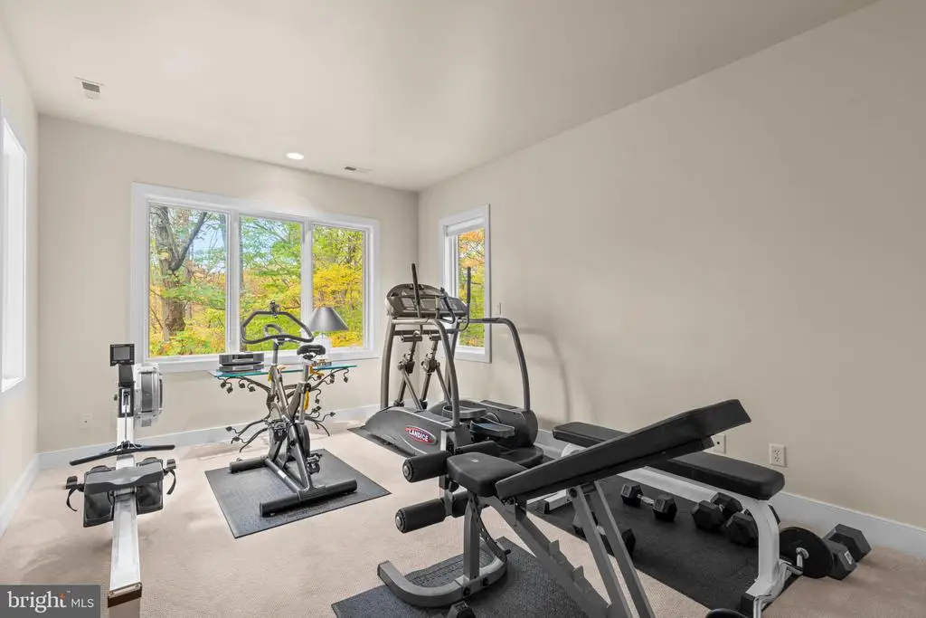 Welcome home to 2331 Ridge Tree Court! An architecturally stunning 5 bedroom, 4.5 bath contemporary residence nestled on a picturesque 1.39-acre lot in sought-after Ellicott City. Designed with seamless transitions and striking lines, this elegant and modern home offers a perfect blend of sophistication, comfort, and natural beauty. Oversized windows frame breathtaking views of the surrounding trees, stream, and seasonal foliage, creating a serene retreat just moments from urban conveniences. Step inside the grand foyer and be captivated by the breathtaking spiral staircase, a sculptural centerpiece highlighted by floor-to-ceiling windows that bathe the space in natural light. The open-concept main level features gleaming hardwood floors, a dramatic vaulted ceiling, and built-in speakers setting the tone for stylish living and effortless entertaining. The custom builder spared nothing! There are too many options to mention! The gourmet kitchen is a chefs dreamfeaturing an oversized granite center island with breakfast bar and pendant lighting, black lacquer soft-close cabinetry, skylights, and top-of-the-line stainless steel appliances including dual Monogram wall ovens, a six-burner gas cooktop, and a paneled KitchenAid refrigerator. The kitchen opens directly to a Trex deck, ideal for outdoor dining and enjoying panoramic wooded views. The main-level primary suite is a private sanctuary with vaulted ceilings, skylights, and a spa-inspired ensuite bath boasting a glass-enclosed ceramic tile shower and a jetted soaking tub. A cozy den/study with gas fireplace offers the perfect space for work or relaxation, while the family rooms gas fireplace with slate surround and custom built-ins create a warm and inviting gathering area. Upstairs, youll find three spacious bedrooms and two full baths each designed with comfort and style in mind. The finished lower level is an entertainers dreamfeaturing a spacious recreation room with a gas fireplace, a billiard room (pool table conveys), and an oversized custom wet bar complete with refrigerator and dishwasher. Sliding doors lead to a flagstone patio, extending the living space outdoors. The fifth bedroom with ensuite full bath offers the perfect setup for an in-law or au pair suite. A two-tiered media room is waiting for the ultimate home theater experience. Additional highlights include: Stucco and stone exterior with timeless curb appeal Two-car front-load garage and generous driveway parking 1.39-acre lot backing to woods and stream This extraordinary and impeccably kept home combines architectural artistry with modern luxuryoffering peace, privacy, and elegance in one of Howard Countys most desirable communities.
