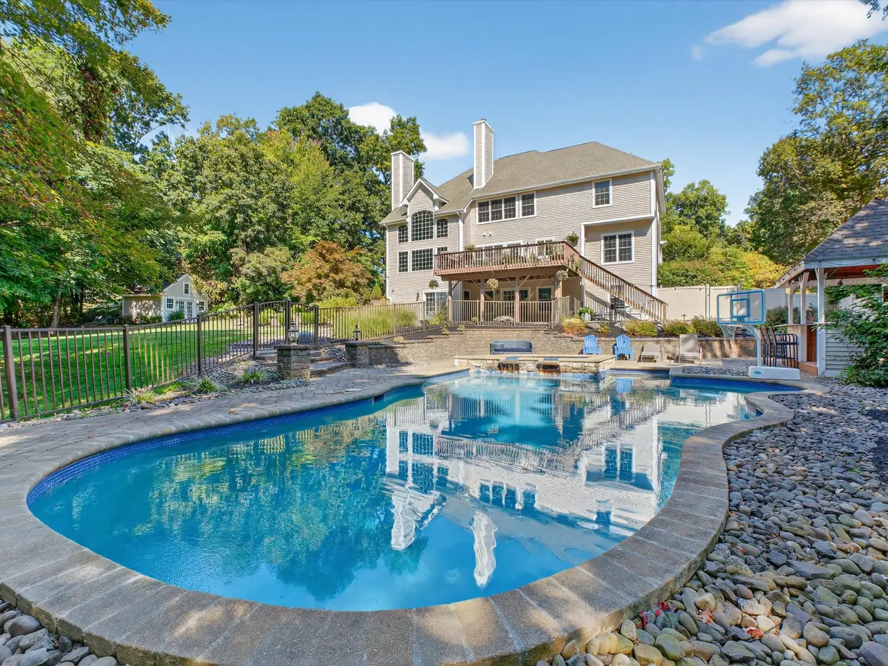 Welcome to this stunning Colonial home with Resort-Style Living, where timeless designs meets modern luxury. From the moment you step into the grand foyer with soaring ceilings and a sweeping front staircase, youll be captivated by the refined details and thoughtful layout of this exceptional residence.The first floor boasts rich dark hardwood floors that flow seamlessly throughout. A formal dining room and a formal sitting room provide elegant spaces for entertaining, while the open floor plan connects effortlessly to the heart of the home. A light filled office space off of the kitchen, with glass door next to kitchen. The chefs kitchen is designed to impress, featuring a center island, stainless steel appliances including a double oven, and all appliances needed to create esquisite cuisine including a pantry for storage. The adjoining eat-in kitchen overlooks the spectacular family room, where soaring ceilings, expansive windows (with UV Filter), and a stately fireplace create a dramatic and inviting setting. Take the convenient back staircase to the upper level to retreat for the night.Upstairs, youll find four spacious bedrooms. The primary suite is a private retreat with a tray ceiling, cozy sitting area with fireplace, dual walk-in closets and a spa-like ensuite featuring a soaking tub, double vanity & dual closets. The second bedroom includes its own ensuite with a beautifully updated bathroom. The third and fourth bedrooms share a stylish Jack & Jill bath, both boasting high ceilings and abundant natural light. A second floor laundry room with washer, dryer, and work sink adds everyday convenience.Finally walk down to the finished walk-out basement, which expands the living space with a multi-level in home theater, a wet bar and with cabinetry for storing all your entertaining needs. There is also a large area for more living space or use as a recreational space (which it currently is). a full bathroom, an additional room which can be used as a guest room and generous storage areas.Step outside to your own private resort. The heated in-ground pool with waterfall features sets the stage for relaxation, while the gazebo with bar-height counters, fridge, storage, and TV hookup makes outdoor entertaining effortless. The private, landscaped grounds also include a three-car garage, a shed with its own driveway for easy loading. Home also offers some smart home functions such as Lutron Lighting system and Rachio Sprinkler system for easy to access features via an app.Perfectly located near the Taconic Parkway, shopping and schools, this home offers both convenience and tranquility.