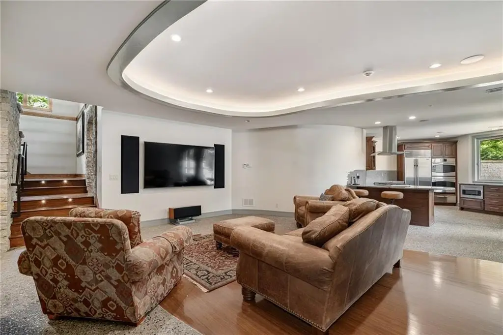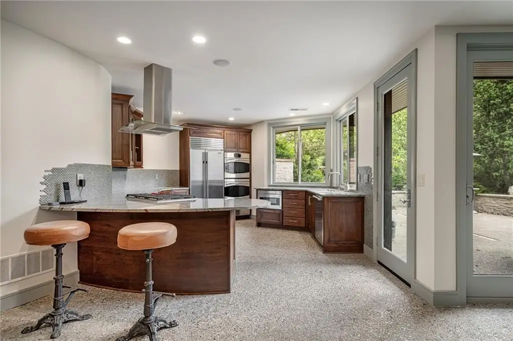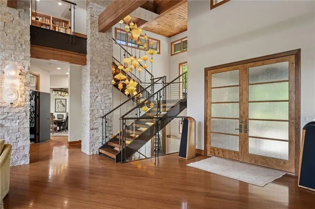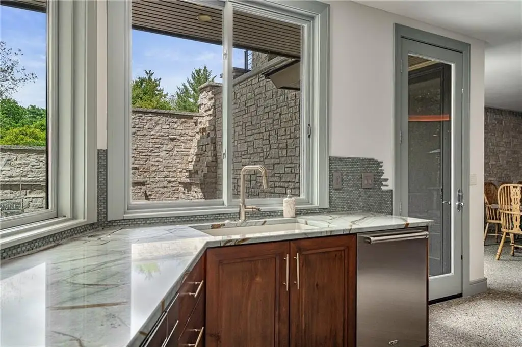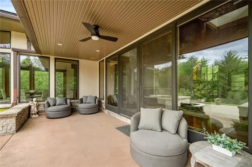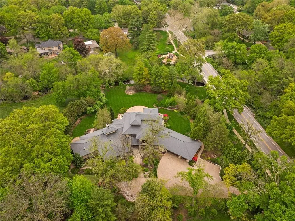 $200,000 PRICE REDUCTION on gorgeous LUXURY ESTATE in OLD LEAWOOD on Iconic Lee Blvd! Completely remodeled and transformed with over $2 million in renovation! Prepare to be swept off your feet by this jaw-dropping, one-of-a-kind estate on 1.7 acresnestled along a peaceful creek and backing to a picturesque park. This reimagined contemporary masterpiece blends high-end design with exceptional craftsmanship in one of the most sought-after neighborhoods in the metro. Step inside to an open-concept showpiece anchored by a chefs dream kitchen featuring Wolf appliances, gas cooktop, custom wet bar with live edge slab, beverage fridge, and a breakfast room framed by windows overlooking lush, manicured landscaping. Natural light pours into the main level, highlighting soaring ceilings in the great room and offering a true sense of serenity and space. The show-stopping primary suite offers a spa-worthy bath, private patio, and peaceful views. Two additional guest suites on the main floor provide comfort and privacy. A dramatic formal dining roomcomplete with a second wet bar, dishwasher, and custom cabinetrysets the stage for unforgettable entertaining. Throughout the home, hand-blown glass light fixtures add artistry and elegance to every room. Upstairs, a cozy library loft with built-ins and a private balcony overlooks the great roomperfect for reading or quiet reflection. The walk-out lower level is an entertainers dream, boasting a second kitchen with exotic granite, Wolf appliances, expansive rec room with surround sound, fourth bedroom with private bath, half bath, wine cellar, and a display room ideal for art or special collections. Stone accent walls add warmth and lodge-like charm. Step outside to the private lower-level patio and enjoy your very own botanical paradise. The seller has planted dozens of mature trees, flowering shrubs, and vibrant bloomscreating a landscape that evolves beautifully with the seasons. A true legacy property in Old Leawood.