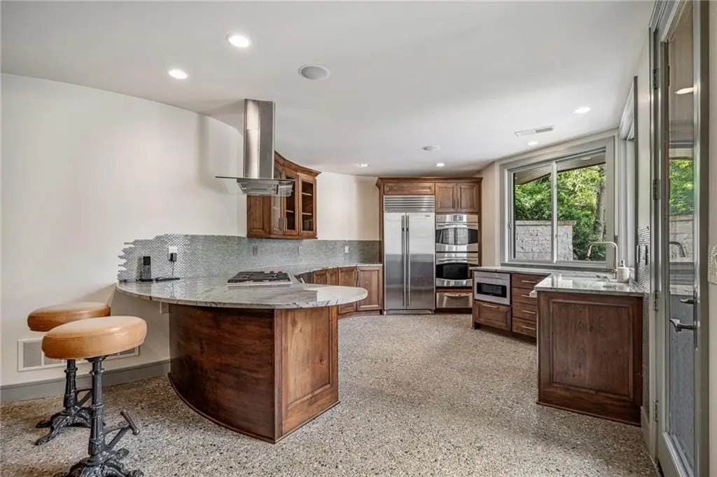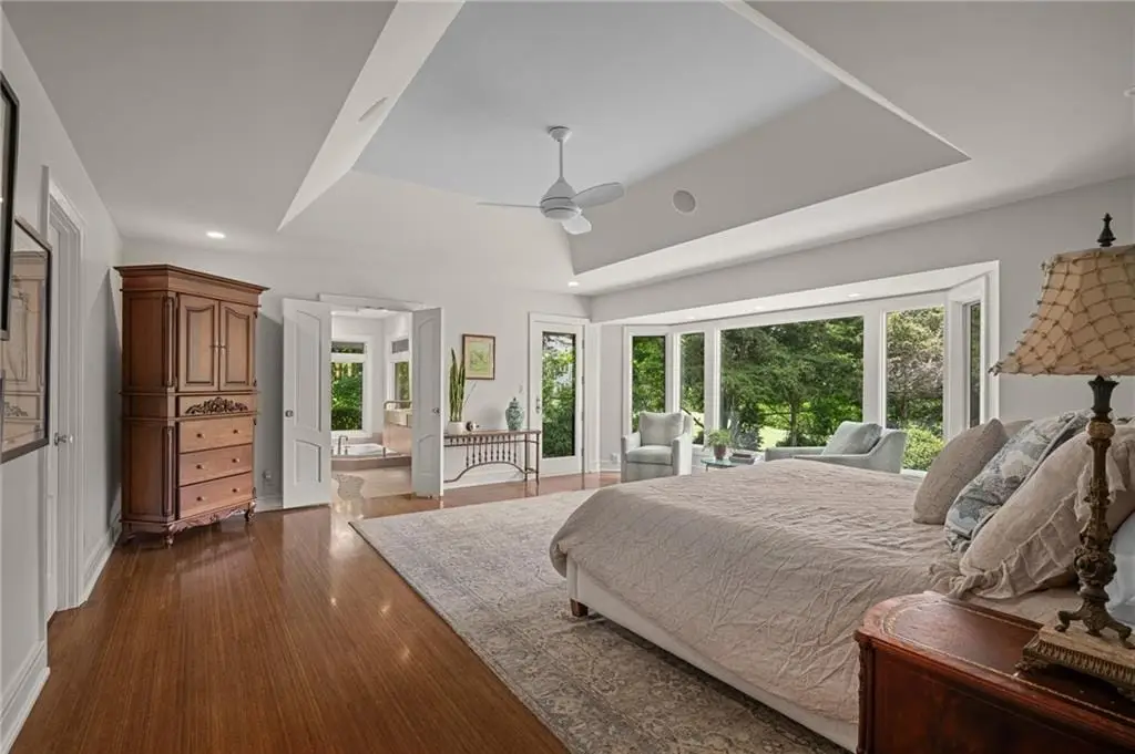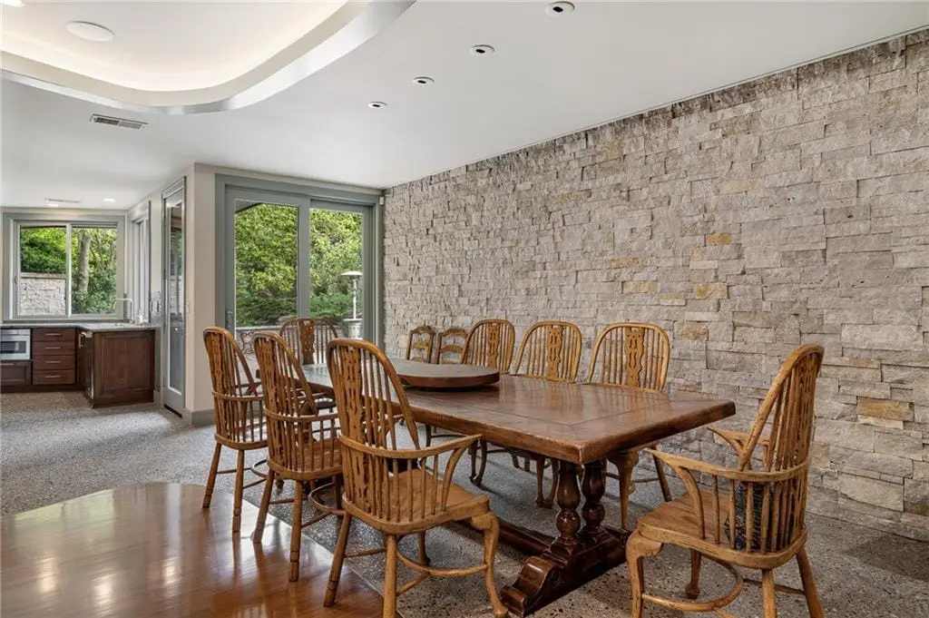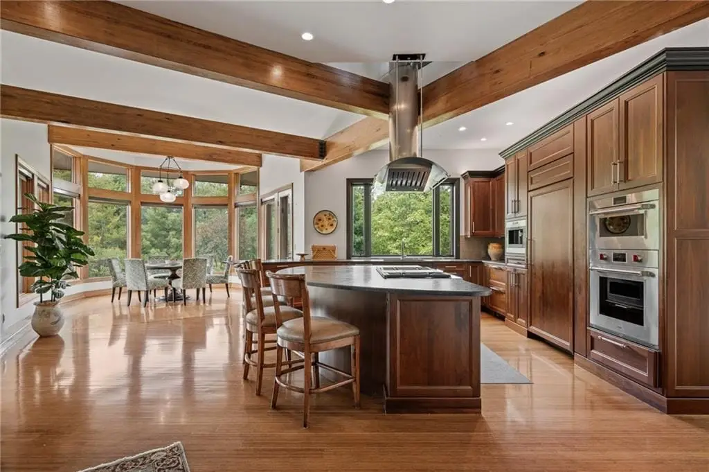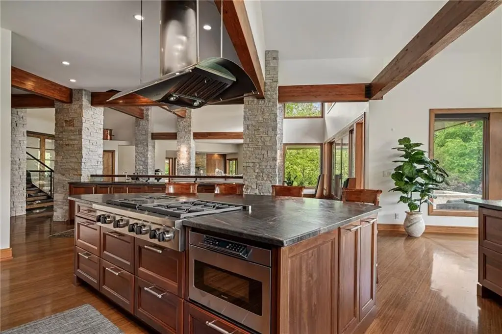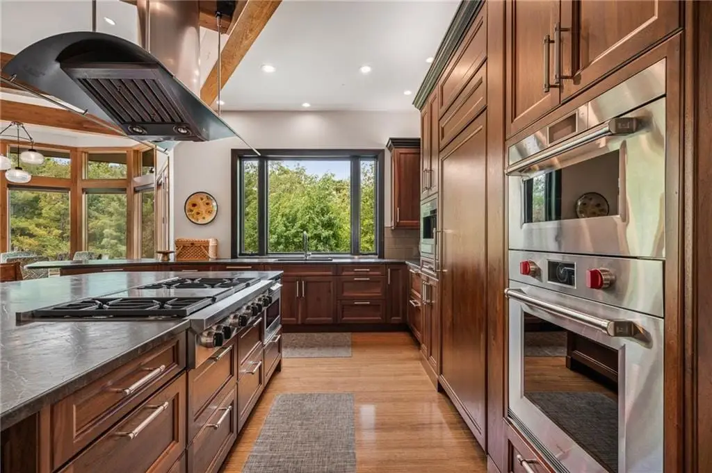 $200,000 PRICE REDUCTION on gorgeous LUXURY ESTATE in OLD LEAWOOD on Iconic Lee Blvd! Completely remodeled and transformed with over $2 million in renovation! Prepare to be swept off your feet by this jaw-dropping, one-of-a-kind estate on 1.7 acresnestled along a peaceful creek and backing to a picturesque park. This reimagined contemporary masterpiece blends high-end design with exceptional craftsmanship in one of the most sought-after neighborhoods in the metro. Step inside to an open-concept showpiece anchored by a chefs dream kitchen featuring Wolf appliances, gas cooktop, custom wet bar with live edge slab, beverage fridge, and a breakfast room framed by windows overlooking lush, manicured landscaping. Natural light pours into the main level, highlighting soaring ceilings in the great room and offering a true sense of serenity and space. The show-stopping primary suite offers a spa-worthy bath, private patio, and peaceful views. Two additional guest suites on the main floor provide comfort and privacy. A dramatic formal dining roomcomplete with a second wet bar, dishwasher, and custom cabinetrysets the stage for unforgettable entertaining. Throughout the home, hand-blown glass light fixtures add artistry and elegance to every room. Upstairs, a cozy library loft with built-ins and a private balcony overlooks the great roomperfect for reading or quiet reflection. The walk-out lower level is an entertainers dream, boasting a second kitchen with exotic granite, Wolf appliances, expansive rec room with surround sound, fourth bedroom with private bath, half bath, wine cellar, and a display room ideal for art or special collections. Stone accent walls add warmth and lodge-like charm. Step outside to the private lower-level patio and enjoy your very own botanical paradise. The seller has planted dozens of mature trees, flowering shrubs, and vibrant bloomscreating a landscape that evolves beautifully with the seasons. A true legacy property in Old Leawood.