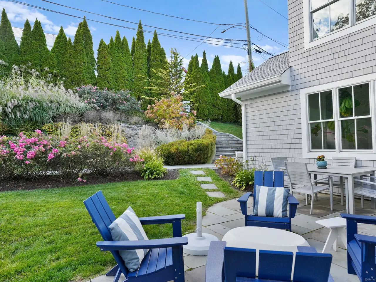 Nestled in privacy by nearly 100 arborvitae, this ultimate retreat on a rare double lot is just steps from Old Mill Beach & Compo Beach. The home distinguishes itself by offering water views from nearly every room & from the expansive decks located on multiple levels. Fully remodeled & expanded in 2018, this thoughtfully designed home features oversized windows to enjoy spectacular sunrises & sunsets throughout the year. The sleek, modern kitchen seamlessly transitions into the dining & living areas, creating an ideal space for entertaining. The primary suite features a luxurious bathroom, walk-in closet, stylish dressing area & inviting fireplace. A finished third floor adds valuable living & entertaining space with modern glass doors opening to a rooftop terrace & outdoor fireplace. The versatile lower level can serve as recreational space or as a private guest suite. Enjoy al fresco dining on the bluestone patio adjacent to the colorful gardens. Easy access to golf, tennis and boating at Longshore, just a short stroll away.
