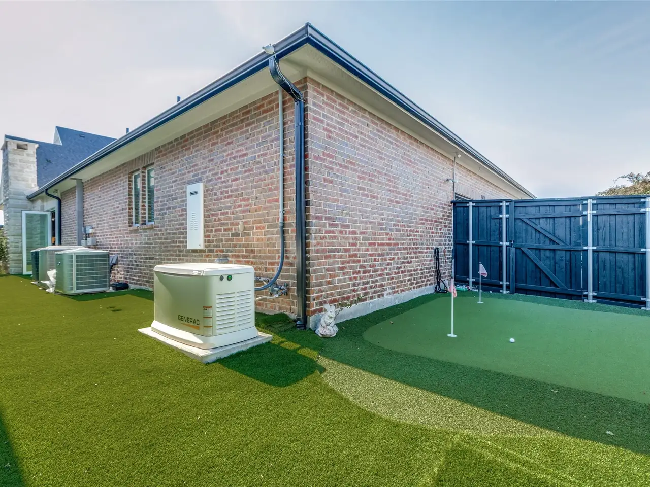 Welcome to this meticulously kept SINGLE STORY charming home by Darling Homes w 3-car garage located across from a scenic greenbelt in The Canals at Grand Park! This home offers luxury and over-the-top upgrades throughout. Open concept floor plan with hand-scraped hardwood floors from the foyer through the study, living & kitchen areas. The chefs kitchen features white shaker cabinets, a custom vent hood, gas cooktop, double ovens, stainless steel appliances and a large island for entertaining. Two kitchen pantries, a separate laundry room & mudroom with built-ins provide excellent storage. The living and dining areas flow seamlessly into a newly constructed entertainer's Dream den, offering an add'l 634 sq ft equipped with wood burning fireplace, chimney, Central air & heat, BULL 6 burner gas grill & vent hood, 2 beverage fridges, ceiling fans, space heaters, recessed lighting, 2 folding Marvin doors, rich stone flooring and ample bar seating. Other features of this home include a split bedroom layout, spacious master & secondary bedrooms, walk-in closets, and private baths. A private double door study offers flexible uses for music or fitness. Other home upgrades include a new Class 4 shingle roof, gutters & vents; Generac 26KW whole-home generator with 200 AMP automatic transfer switch; artificial turf backyard with 3 hole putting green; new stone flowerbeds & new landscaping; 6 newly planted trees; dusk to dawn front porch & landscape lighting; remote-controlled motorized driveway gate;newly installed garage doors, motors & fans; epoxy-coated garage floors; newly installed side yard fencing plus extensive restaining; 3 newly installed chandeliers & ceiling fans. HOA maintains front yard landscaping for easy living. Frisco ISD A Rated schools. Optional Founders Hall membership offers clubhouse, pools, and fitness center. Minutes to The Star, Legacy West, PGA Headquarters & Dallas North Tollway. This immaculate, move-in ready 1 story beauty is waiting for you!