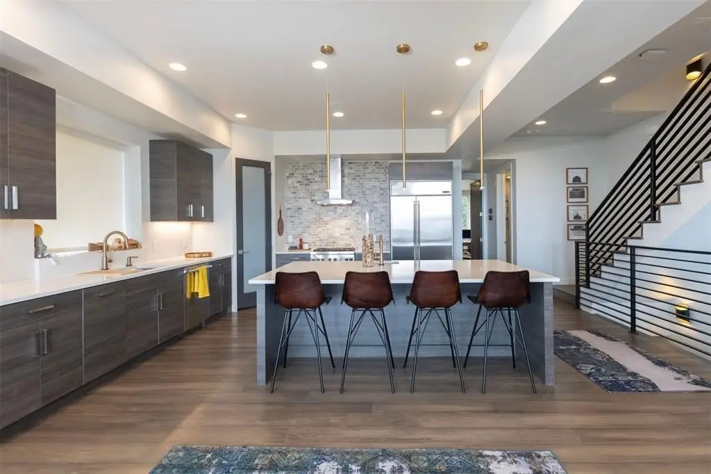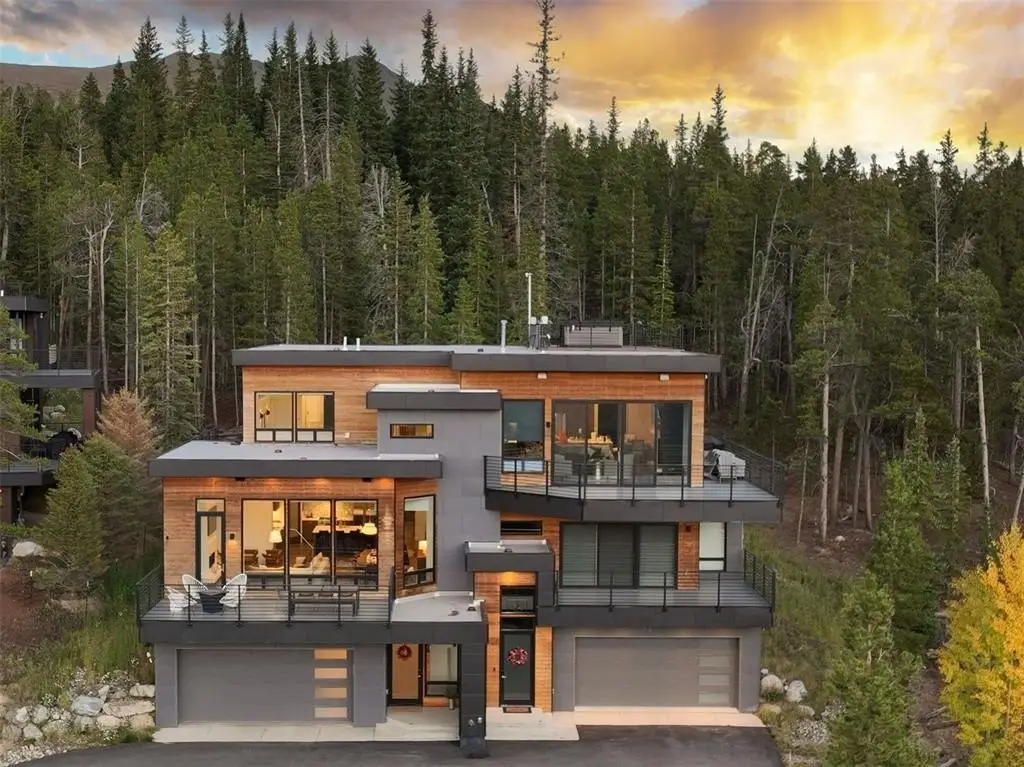 Mountain modern masterpiece combining a mid-century aesthetic with a western sensibility. This impeccably curated property lives like a single-family residence offering over 3,190 square feet of luxury living space plus a 775-square-foot heated 2+ car garage with two owner’s closets. Built with ultra-efficient ICF exterior construction, the home maintains remarkable comfort year-round, with radiant heating across seven zones and a snowmelt system at the entry and apron. The main level features soaring 13’ ceilings, Sierra Pacific windows and doors, and seamless access to expansive elevated decks for indoor-outdoor living, with unparalleled views of the entire Ten Mile Range. A Morning Star elevator provides convenience across all levels, while custom Lutek roller shades—motorized in primary living spaces—deliver privacy and style. Flexible spaces allows the home to adapt to every need: a media room doubles as a bedroom with queen and Murphy bunk sleeping for four, while an office can easily flex to a fifth bedroom. The primary suite impresses with dramatic ceilings, a spa-like bath, private deck, and adjacent laundry. The chef’s kitchen is outfitted with Thermador and Jenn-Air appliances, dual beverage coolers, and sleek modern finishes. Entertainment and technology are second to none with a Savant smart system controlling lighting, shades, audio, A/V, Wi-Fi, garage, and front door—whether at home or remotely. Multiple TVs, KEF speakers, Dolby Atmos surround, and whole-home audio (indoor and outdoor) are all included. Outdoor adventure begins just beyond the patio, with backcountry skiing, snowshoeing, mountain biking and hiking access to Baldy, Australia Gulch, Sister’s Cabin, and Sally Barber. Snow removal is prepaid through April 2026, and infrastructure is already in place for a future hot tub or additional rooftop deck. This Architect/Designer owned home is offered with all installed appliances, Savant equipment, Murphy beds, and more.