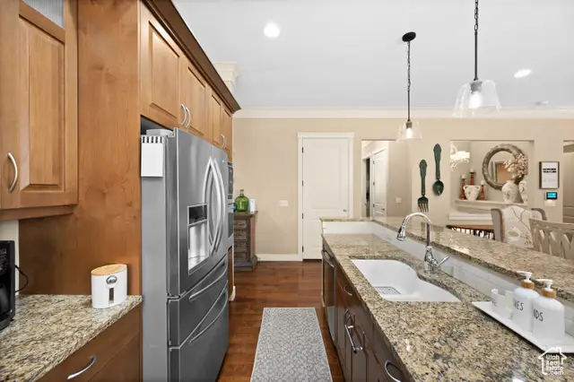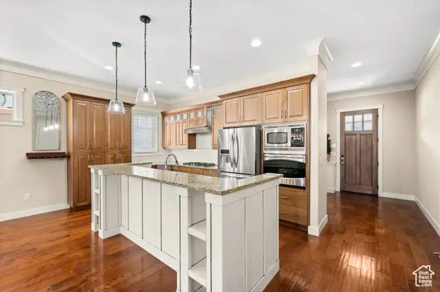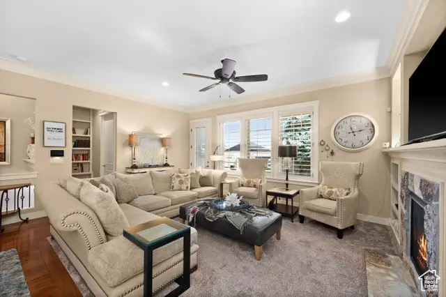 2961 Marley Place is a custom-built four bedroom, 3.5-bathroom single-family home located in the gated Arcadia community of East Millcreek. Completed in 2012, this spacious 4,071square foot residence sits on a beautifully landscaped 5,662 square foot lot and blends luxurious finishes, scenic mountain views, and a high degree of privacy. Designed for professionals or anyone seeking elegant, low-maintenance living, the home features a thoughtfully planned main-level living with two bedrooms, including two private en-suites, and a conveniently located powder room just off the great room. The interior offers generous living space, fabulous kitchen, and is ideal for entertaining, remote work, or relaxation, and includes recently added custom-built solid maple cabinets in the library/office. The home looks brand new, one owner, super clean and immaculately taken care of! Built with designer-grade materials and finishes typical of Arcadia homes, the property includes hardwood flooring, detailed stonework, plantation shutters, and granite countertops. The bright, fully high-end finished basement adds to the livability with two large, beautifully appointed bedrooms, a spacious family room with built-in cabinets, a wet bar, and ample storage throughout. A cozy fireplace and central heating and cooling ensure year-round comfort. Outside, the home enjoys a quiet, gated setting with scenic mountain vistas, manicured common areas, and low-maintenance landscaping. The attached three-car garage is complemented by three additional guest parking spaces. Located in a close-knit, East Millcreek neighborhood, the owners have enjoyed easy access to fitness centers, shopping, and downtown Salt Lake City, as well as proximity to top-rated schools in the Granite School District including Upland Terrace Elementary, Wasatch Junior High, and Skyline High. And, just 15 minutes to the Salt Lake City airport. This stunning 2012-built home is a rare opportunity for buyers seeking sophistication, privacy, and ease of living in one of Salt Lake's most desirable communities. Square footage figures are provided as a courtesy estimate only. Buyer is advised to obtain an independent measurement.