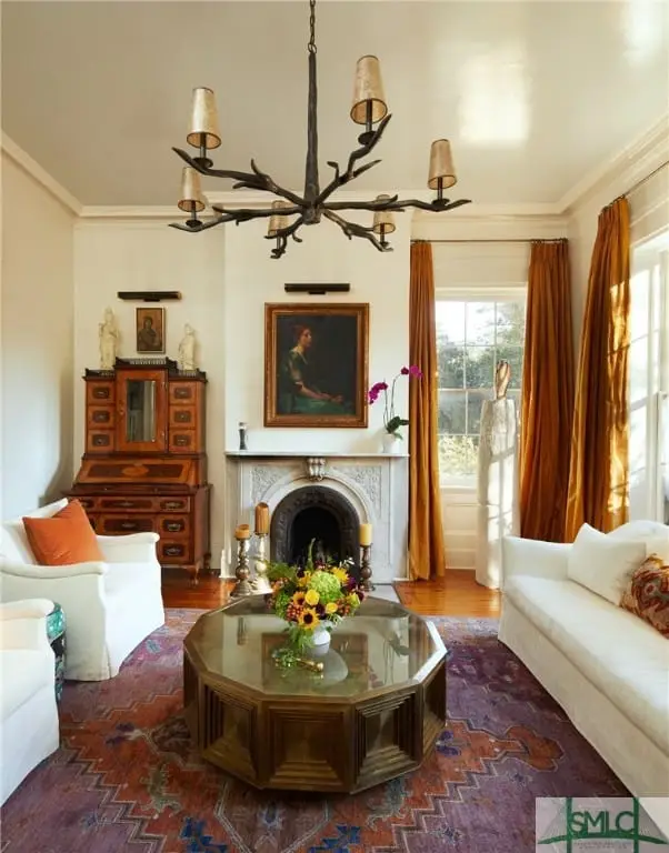 Enjoy unparalleled luxury and experience the pinnacle of downtown Savannah living at this exquisite freestanding c.1855 brick residence located in the heart of the Historic Landmark District on Monterey Square. Distinctive architectural design seamlessly blends period details with sophisticated modern elements. Couture-furnished interiors appointed with extraordinary natural materials and quality finishes are defined by beautifully proportioned light-filled spaces, soaring ceilings, exquisite plaster work, Old World craftsmanship, custom-lacquered finishes, hand-painted walls by renowned artist Bob Christian and custom lighting. The primary suite with private veranda stands apart as a sanctuary of style that occupies the entire second floor. A breathtaking chef's kitchen serves as a haven for home chefs and wine connoisseurs. This 5,500-plus square foot architectural masterpiece offers additional amenities, including stunning outdoor spaces, private elevator, garden-level apartment, two-car garage and much more.