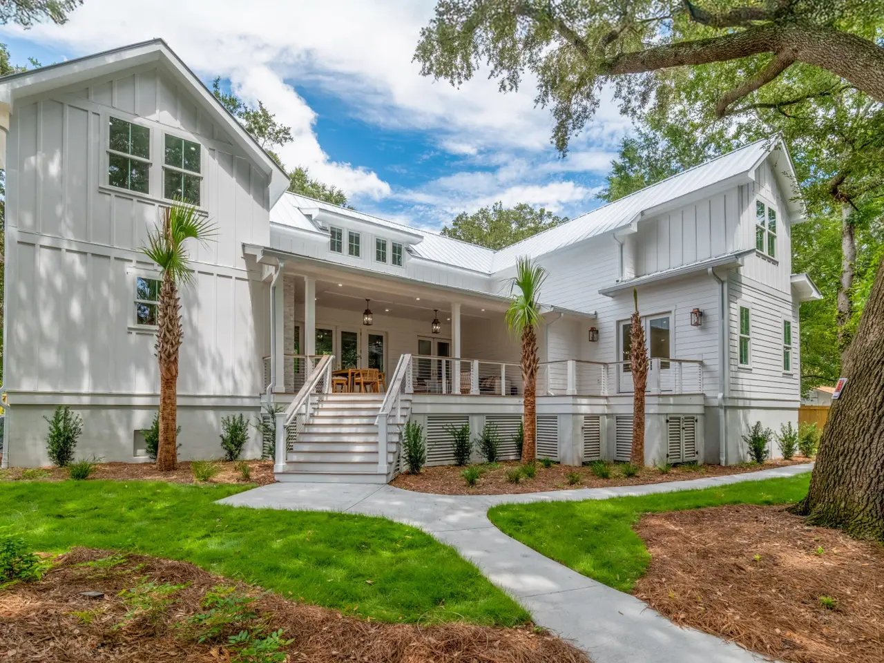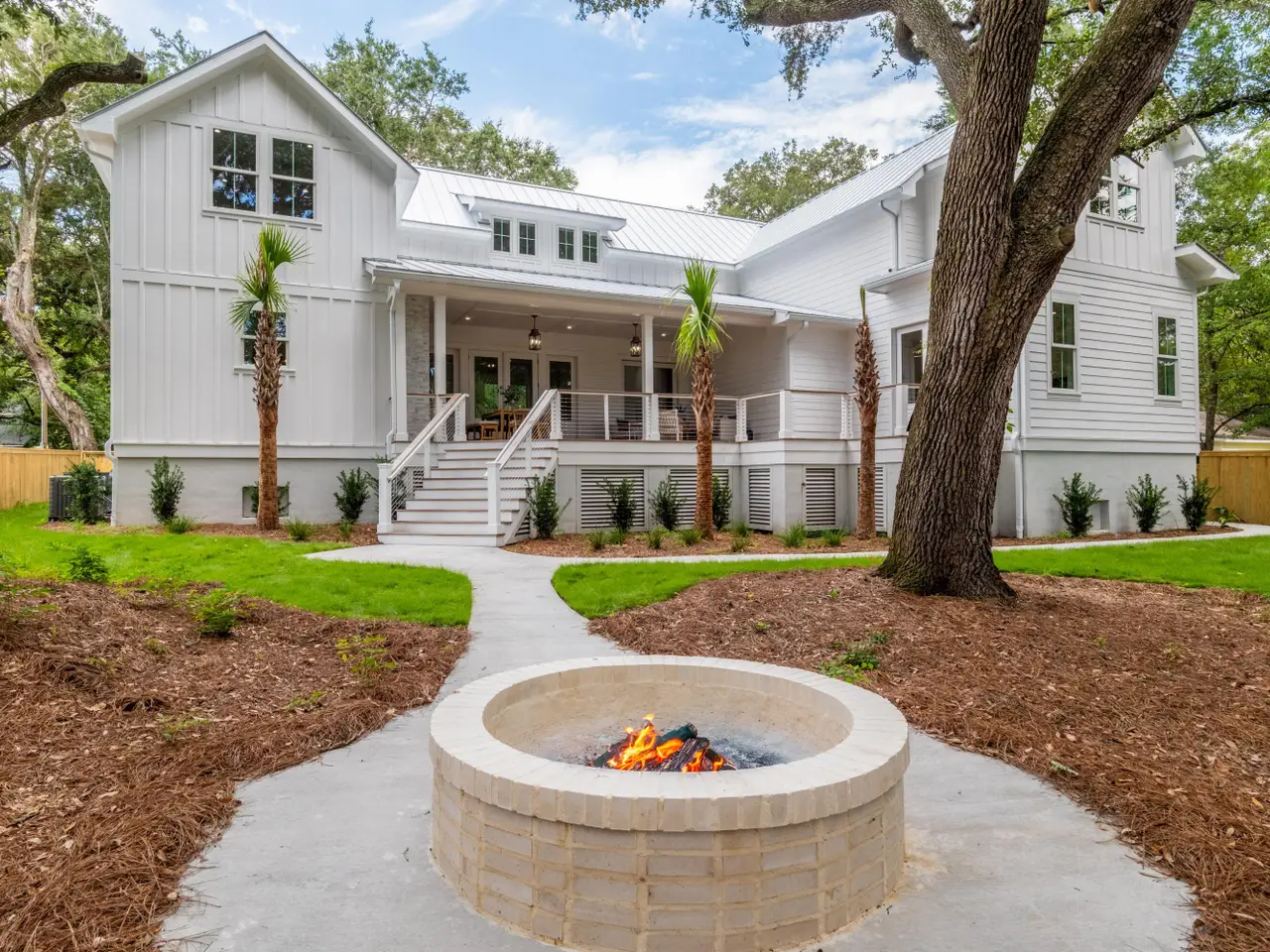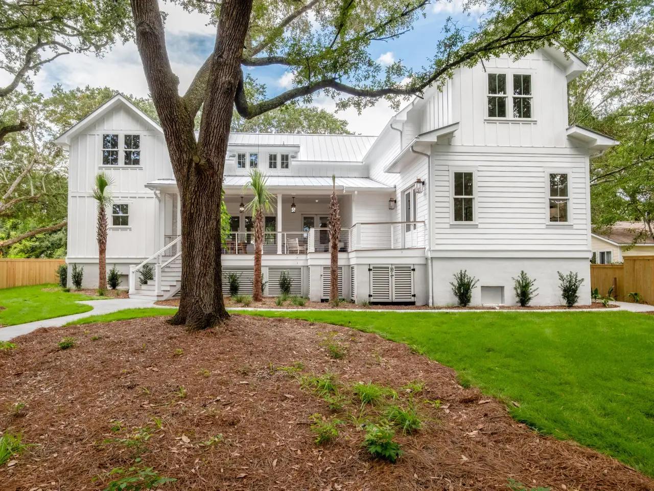 Southern charm exudes from this classic lowcountry home which envelopes you with warmth upon entry. Steps away from shopping and dining in the quaint Old Village area. Only a short 5 minute drive to Sullivans Island beach. Once inside, you will notice the beautiful light that bounces off the huge oak trees scattered over the property. The gourmet kitchen offers a cabinet panel fridge and Thermador appliance package and large island. Just off the kitchen is a beautiful built-in cocktail or coffee bar. The pantry/scullery is quite large and also hosts a brand new Samsung washer and dryer. This area is perfect for hiding all those kitchen appliances and offers tons of storage and prep space for special events/catering. The office is a nice area for working or a quiet place to read a book.The great room offers a fireplace for warm cozy nights and rainy days and is flanked by built-in shelves and cabinets. This home offers dual primary suites so take your pick! The ensuite baths are luxurious and take note of the custom tile showers, luxurious soaking tubs and private Bidet. The enormous second level primary retreat offers multiple options such as, multiple twins, two queens or king and a sitting area. This home features a very large flex room upstairs and a fantastic wet bar with fridge and coffee bar. There are two more bedrooms upstairs with a shared Jack and Jill and is quite spacious with extra built in cabinetry. The yard is shady and has a brand new custom fence. Notice the fire-pit for those chilly nights. This home is equipped with landscape irrigation.The rear deck hosts a fireplace and dining alfresco. This home carries two Rinnai tankless water heaters, and dual thermostats one for each level. Be sure to take a look at the floorplan in the document section to view the layout of this large 4,518 square foot home. The driveway is wide for easy in and out and the front yard offers a special car park with space for 2 additional parking options. This brand new beautiful home is complete and offers immediate occupancy for the new home owner.