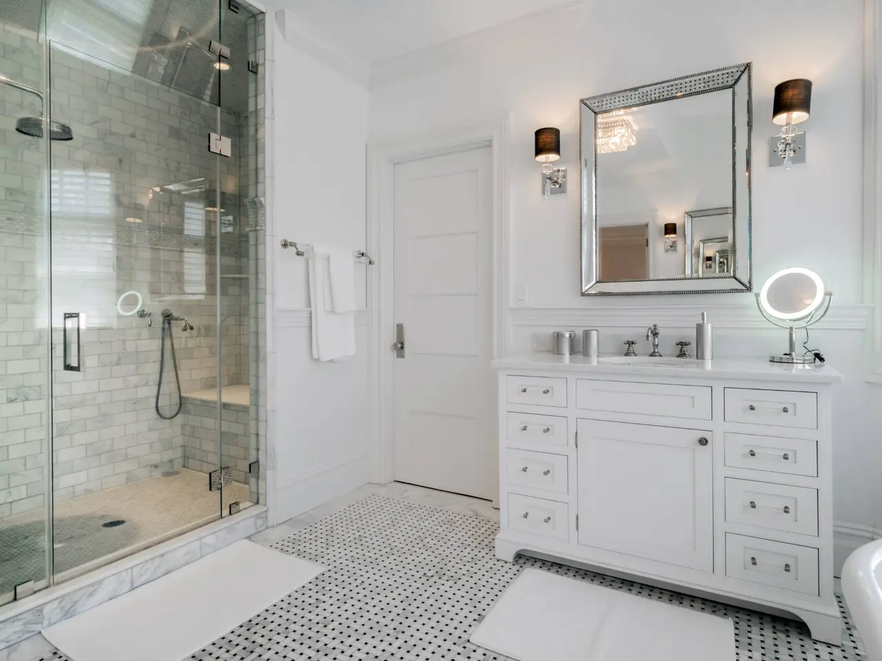 Built in the classic 'Hamptons' traditional estate style with gambrel rooflines and an eyebrow window, this cedar and stone residence sprawls across 2.15+/- acres in renowned Sagaponack. The grand entry foyer with a main staircase, coffered ceiling and chandelier welcomes to over 10,000 sf of living space featuring 8 bedrooms, 8 bathrooms, formal living room, formal dining room, and music room. With fireplaces in the formal and casual living rooms, decoration is immaculate in whitened neutrals illuminated by custom crystal, chrome, and stainless fixtures. Elegant and timeless Carrera marble contrasts brilliantly against ebonized hardwood floors throughout. An immense chef's kitchen features herringbone marble back splashes, exceptional slab white-marble counters, and oversize professional appliances which are perfectly integrated within custom white cabinetry. Baths are consistently fitted and exquisitely finished with white marble tiles, counters, porcelain fixtures and cabinetry. A lower-level features entertainment rooms and a theater. The grounds feature a front, circular motor court with separate garage space for three automobiles. Back grounds are graced with a custom heated gunite swimming pool and spa as well as a tennis court.