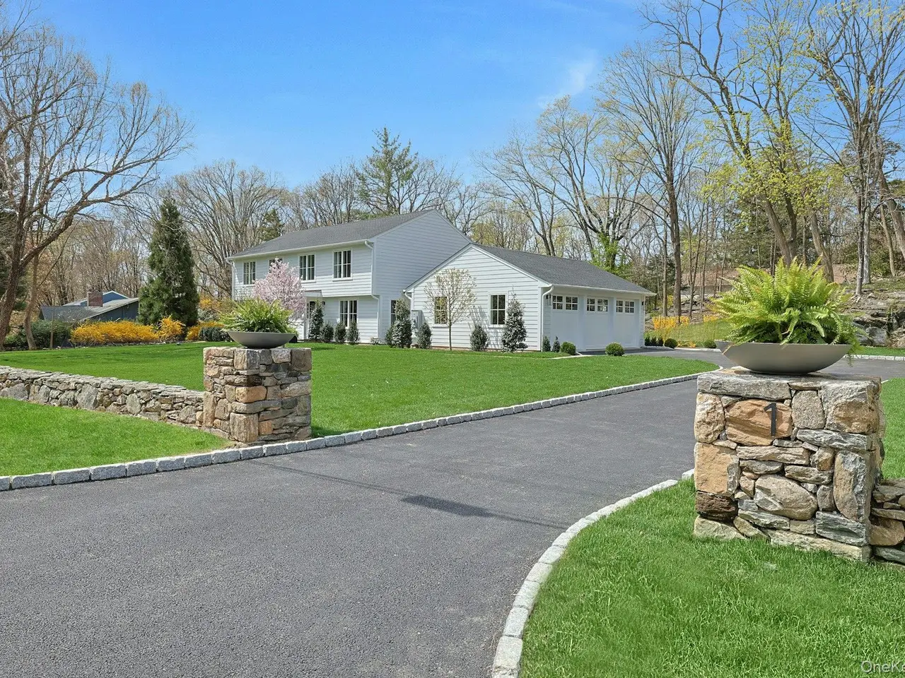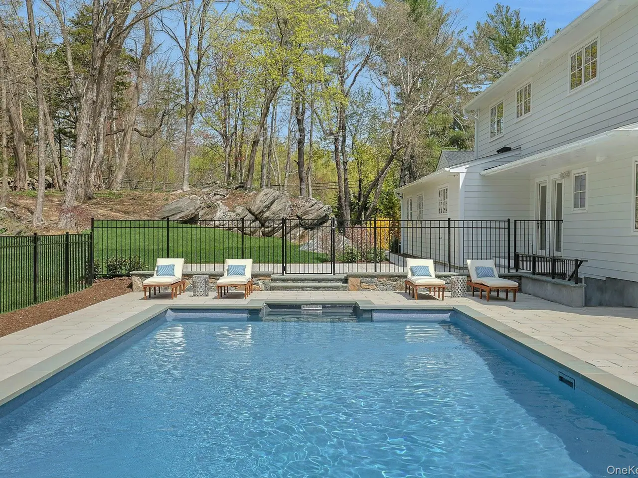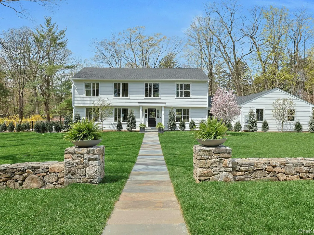 Elegant Colonial with Pool on Cul-de-Sac in Armonk (Byram Hills Schools) Located on a quiet cul-de-sac, this expanded and updated Colonial sits on a level, landscaped acre with a heated in-ground pool, stone patio, and fenced yard. Oversized windows fill the home with light, showcasing wide-plank wood floors and high-end finishes. The chef's kitchen features marble counters, custom cabinetry, and top appliances. The spacious primary suite includes a luxurious bath with radiant heat, soaking tub, and oversized shower. Lives like a 4-bedroom with a flexible first-floor guest room/office. Finished walk-out lower level (~950 sf) opens to the pool area. Approx. 3,800 sf above grade. Oversized 3-car garage, outfitted closets, and full-house Generac generator complete the package.