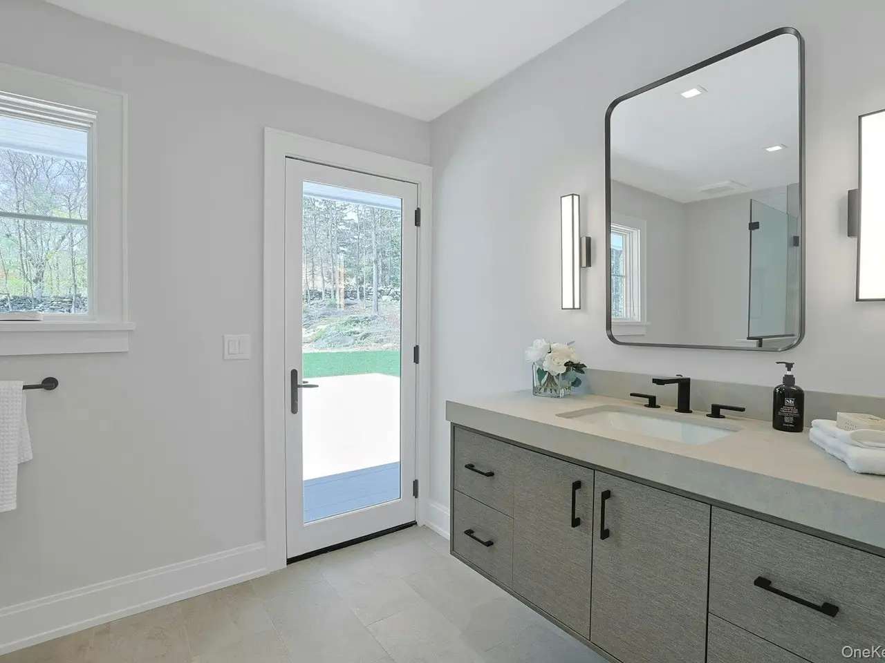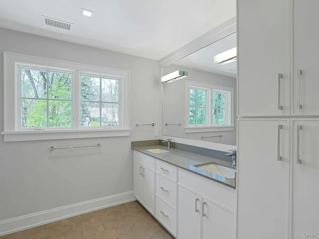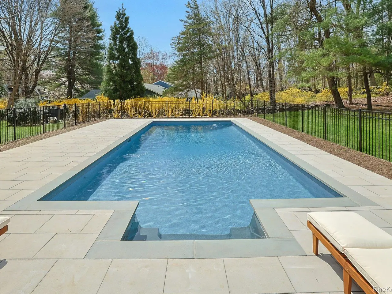 Elegant Colonial with Pool on Cul-de-Sac in Armonk (Byram Hills Schools) Located on a quiet cul-de-sac, this expanded and updated Colonial sits on a level, landscaped acre with a heated in-ground pool, stone patio, and fenced yard. Oversized windows fill the home with light, showcasing wide-plank wood floors and high-end finishes. The chef's kitchen features marble counters, custom cabinetry, and top appliances. The spacious primary suite includes a luxurious bath with radiant heat, soaking tub, and oversized shower. Lives like a 4-bedroom with a flexible first-floor guest room/office. Finished walk-out lower level (~950 sf) opens to the pool area. Approx. 3,800 sf above grade. Oversized 3-car garage, outfitted closets, and full-house Generac generator complete the package.