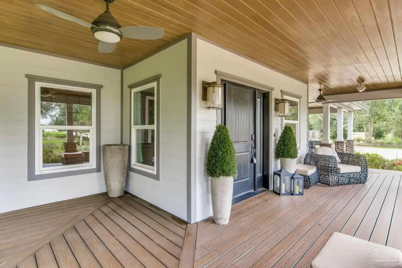 Welcome to this stunning modern farmhouse in Chumuckla, FL-set on over 2 acres of lush landscaping and designed for both luxurious living and unforgettable entertaining. Completely remodeled in 2015, this property is being sold fully furnished-so you can simply move in and start enjoying your dream lifestyle. Step inside the main home where 4 bedrooms, 3 full baths, and an open-concept design create the perfect blend of comfort and style. The living room boasts soaring cathedral ceilings and a dramatic floor-to-ceiling stone dual-purpose fireplace. The chef's kitchen features top-of-the-line appliances, an oversized island with seating, a walk-in pantry, and seamless flow into the dining and living areas. The primary suite, located on the main floor, is a private oasis with two walk-in closets, a spa-inspired bathroom, and direct access to outdoor living spaces. Upstairs, you'll find two spacious bedrooms and a full bathroom for family or guests. Step outside and be wowed by the backyard paradise: a sparkling saltwater pool, separate fiberglass spa, and a fully equipped outdoor kitchen with bar, built-in grill, sink, refrigerator, and a second stone fireplace-perfect for year-round gatherings. But the amenities don't stop there. A fully lit paver walkway leads to a 40x80 building offering: A mother-in-law suite with full kitchen, laundry, living room, and private master suite A dedicated office with a safe room A three-bay shop with oversized garage doors, ideal for boats, cars, or all your toys Every corner of this property is designed for function, comfort, and fun. If you've been dreaming of a modern farmhouse with room to breathe, luxury finishes, and endless extras, this one is calling your name. Schedule your private showing today-this incredible property won't last long!