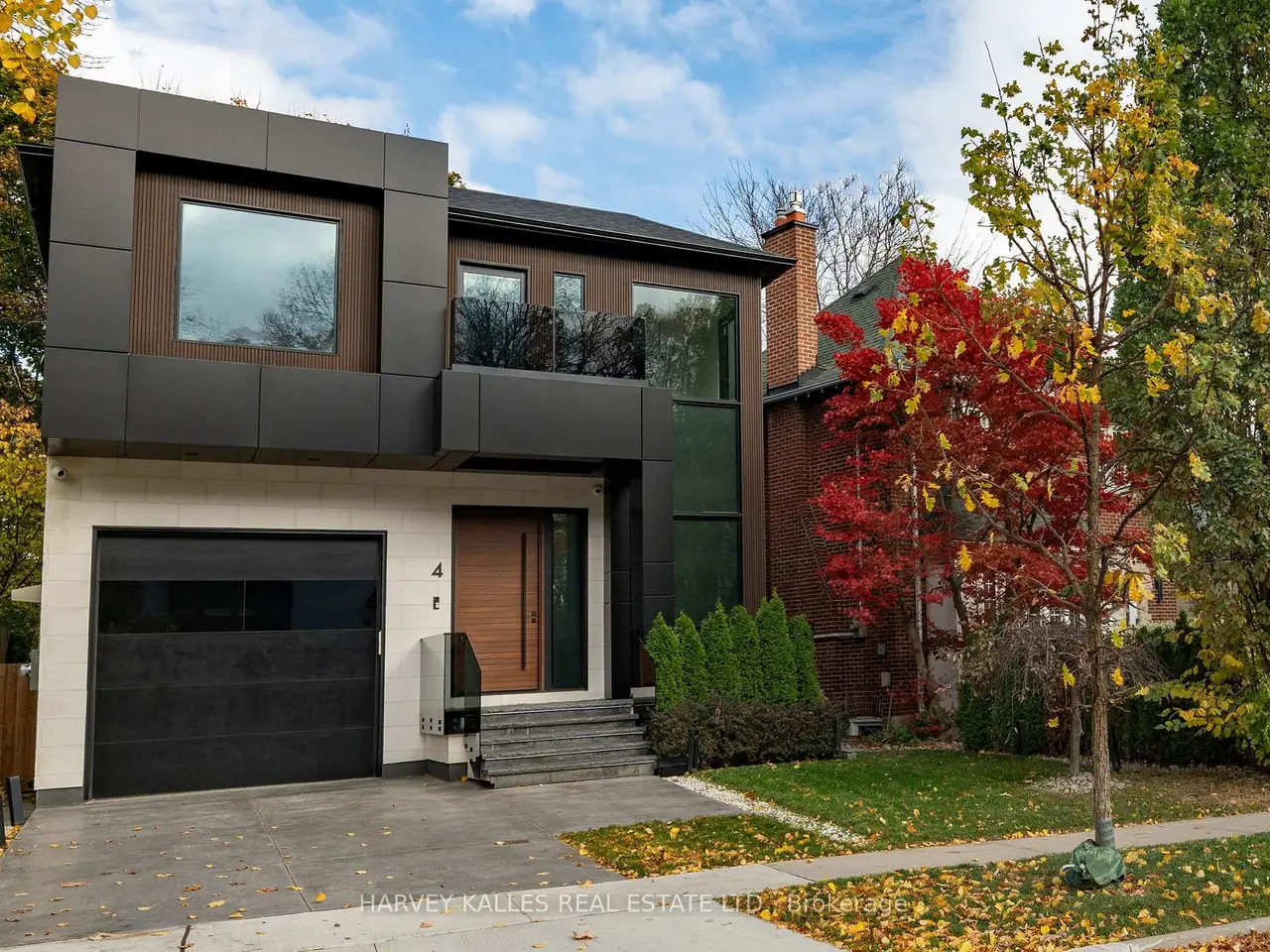 Welcome to 4 Douglas Crescent - a modern masterpiece designed with cutting-edge technology, exceptional details and unparalleled craftsmanship. This architecturally unique home is situated on a prime location on the edge of North Rosedale with easy access to Bayview, the DVP, Yorkville, and Summerhill Market. Perfect for a growing family, this home offers an adaptable layout with 4+1 bedrooms and 5 bathrooms, including a second walk-in closet that can be converted back into a 4th bedroom. Combining contemporary style with high-end touches like floating baseboards with accent lighting, hickory wide-plank hardwood flooring throughout, heated marble floor bathrooms and lower level, 9 skylights in the primary bedroom and a striking semi-floating staircase with maple wood handrail and skylight. A home built with purpose and no expenses spared equipped with Control4 home automation managing lighting, climate, 15 security cameras, over 50 surround sound speakers, and fire-safety rated smart glass windows offering seamless transitions from clear to private at the touch of a button. The backyard is primed for landscaping to make it your own and pre-plumbed for a hot tub, gas fireplace and barbecue. An exceptional Garage features a 6,000 LB car lift, heated floors, EV charger, car wash setup, and reinforced concrete and steel floor, as well as a heated driveway totalling 4 car parking. This turn-key treasure built for those who value design, functionality, and innovation, is ready for you to call it home. Backyard is pre-wired for in for BBQ, water and fire feature.