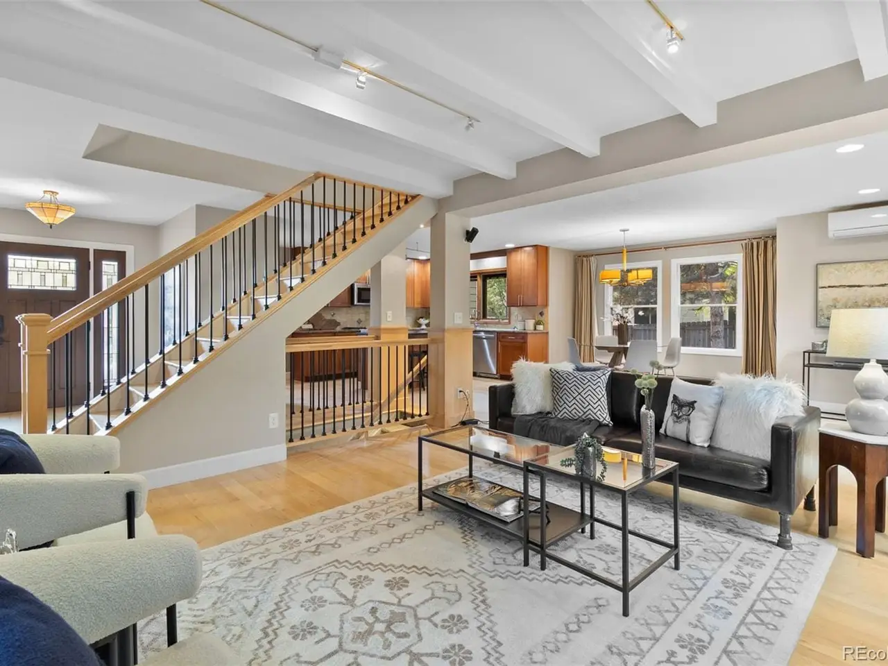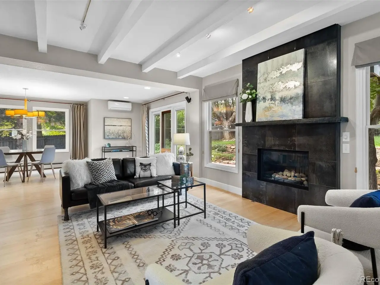 • Primary suite with high beamed ceilings