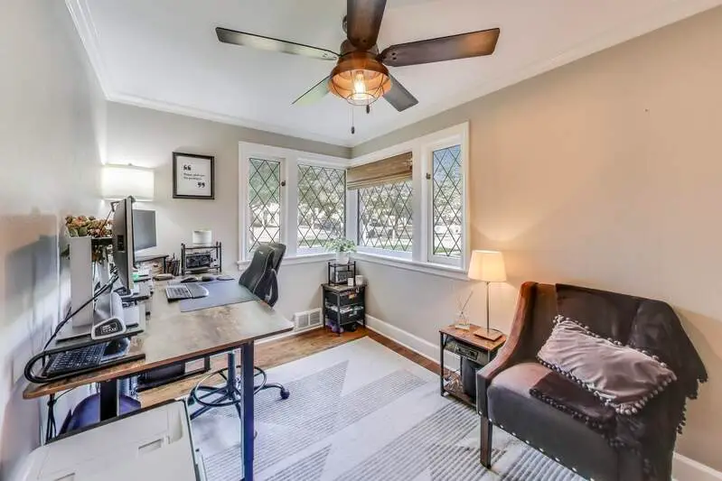 Welcome to this beautiful red brick English Colonial home located in the heart of Glenview's highly sought-after Swainwood neighborhood.The home welcomes you with gorgeous leaded windows in a private front office. Wood burning fireplace in over-sized living room a front window seat overlooking front yard. Remodeled white kitchen with Sub Zero French duo ref. -Wolf glass-top range with Miele range hood, Wolf double oven(conventional and convection/steam), Miele dishwasher, and Quartz countertops adjacent to large family room with wood burning fireplace & glass doors to fenced backyard. 4 generously sized bedrooms and 2 baths on second level. Lovely master overlooking the backyard has fireplace, walk in closet & extra sitting area. Master bath features double sink, whirlpool tub and separate shower. Finished basement features a family room w/fireplace and 5th bedroom with en suite bath. Large laundry room w/ storage and walk out access to yard. The home features 4 fireplaces. Recent updates include: Davinci Roof (2023), Gutters (2023) , Garage Door (2023), Tough Shed (2024), Sump Pump and Battery Backup(2022), Vinyl Siding (2015), Marvin Windows (2012). Located steps to downtown Glenview that boasts Library, Parks, Pool, Metra station, Schools, Restaurants and its exciting redevelopment!