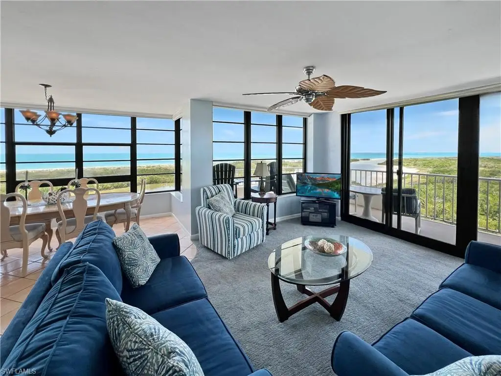 Rare opportunity to own a high-floor beachfront condo in one of Marco Island's most secure, amenity-rich communities ideal for both personal enjoyment and strong rental potential. This is the investment you've been looking for on Marco Island, with 7-day rentals allowed. This 10th-floor, fully furnished two-bedroom residence offers sweeping views of the Gulf and Big Marco Pass, with west-facing exposure that captures jaw-dropping sunsets year-round. The 1,100 square-foot layout features impact glass, a wraparound balcony, and an efficient floor plan that maximizes the view corridor from every major room. The building offers highly desirable short-term rental options and is part of the South Seas Club, a 24hr gated community with robust amenities including a heated resort-style pool, fitness center, tennis, pickleball, boat slips, and private beach access. Two assigned covered parking spots are included. Located just minutes from Marco's top dining, shopping, golf, and executive airport, this unit checks all the boxes for the savvy investor looking to generate income with potential upside appreciation. Strong history of rental performance in this stack. Contact us for income projections and community short-term rental policies.