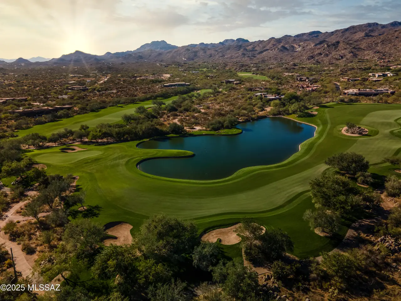 Under Construction \ Experience the epitome of luxury living on Stone Canyon's coveted Hole #10--arguably the best golf hole lot in the community. With sweeping views of the entire fairway, the Tortolita Mountains as a dramatic backdrop, and a sparkling lake in a serene park-like setting, this home offers unmatched privacy on one of the most desirable streets in Stone Canyon.This 4-bedroom, 4.5-bath contemporary home is designed to impress at every turn. A grand entry opens to soaring 15-foot ceilings accented with tongue-and-groove detail and an illuminated tray. The expansive great room, anchored by a dramatic fireplace, flows seamlessly into an opulent kitchen showcasing rich quartered walnut cabinetry, a Wolf range with custom wood-wrapped hood, and a Wolf built-in coffee system.
