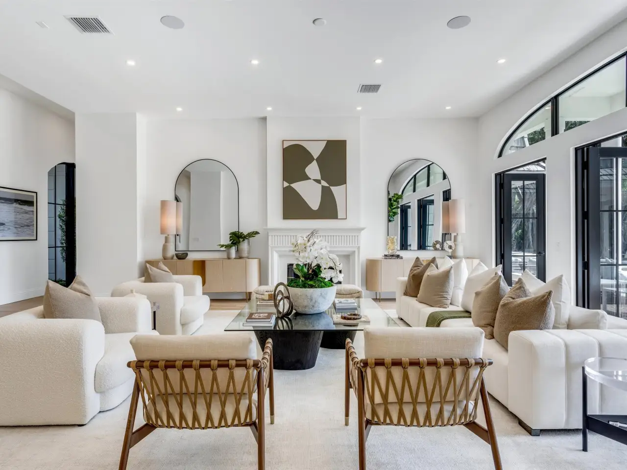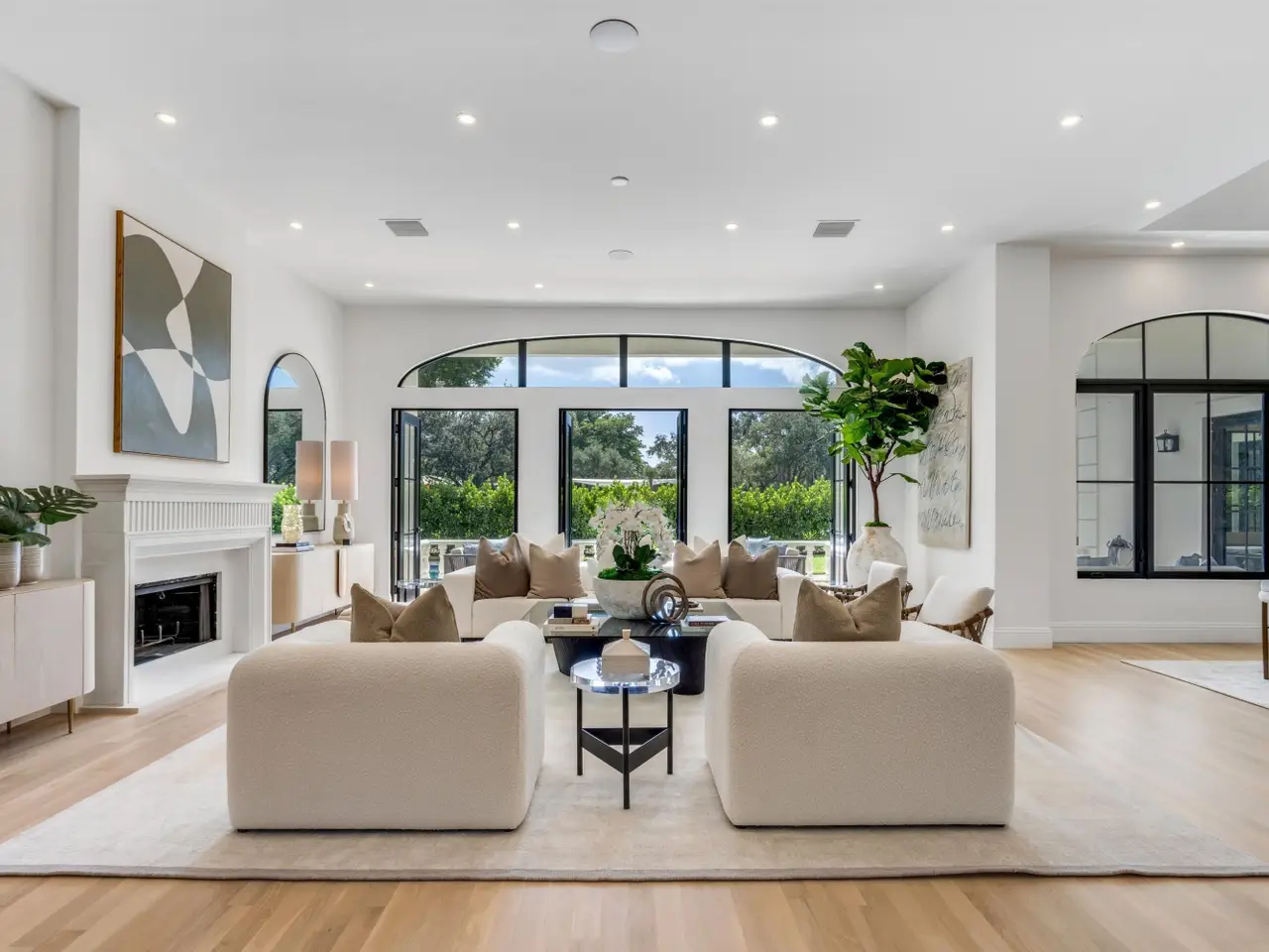Six bedroom/5.1 bath Palm Beach-Inspired Stately residence in LES JARDINS, a highly coveted enclave within five minutes of Pine Crest and St. Andrews Schools and within Spanish River HS district. Evoking timeless grandeur, the hallmarks of this home are high ceilings, impressive room sizes, and floor to ceiling windows.This residence has been completely renovated with exquisite materials and master craftmanship & NEVER OCCUPIED.The thoughtful floor plan includes an expansive kichen/family room/dining area, a catering kitchen, 2 first floor offices w/custom built-ins (one of the offices could be the 6th bedroom), a Club Room, 3 laundry areas, & ensuite w/separate entrance. Les Jardins offers a 24-hour manned gate, 1/2 acre lots,Tennis Courts and Clubhouse with gym.