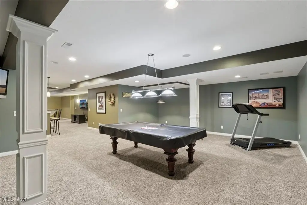 Welcome to this stunning Executive Estate tucked away on a quiet cul-de-sac. Perfectly landscaped on a .52-acre lot, this home offers over 5,400 sq. ft. of luxury living with 5 bedrooms and 5 baths. The Gourmet eat-in Kitchen is a true centerpiece, showcasing Granite countertops, Mocha cabinetry, a Large island with seating, Stainless Steel appliances, and a Glass tile backsplash. The formal Dining room with tray ceiling flows into the Living room for seamless entertainment, while the dramatic Family room impresses with vaulted ceilings, a brick wood-burning fireplace, and walls of windows that fill the space with natural light. The first-floor Office with french doors and bay window creates the perfect work-from-home setting. A custom Mudroom with built-in lockers adds everyday convenience. The expansive Primary suite offers a private walk-out porch, Spa-inspired glamour bath with dual vanities, Jet tub, tiled walk-in shower, and a generous walk-in closet w/ additional storage closet. Upstairs, two Bedrooms share a Jack-and-Jill bath, another offers a private en-suite bath, and a Guest suite/bonus rm includes a newly added closet. The finished lower level extends the living space with a Wet bar, Recreation area, second Office, and Full bath. Step outside to your private backyard oasis, complete with Pergolas, a Paved patio, Stone wood-burning fireplace, Built-in gas grill, Bar seating, and a tranquil Water feature - perfect for entertaining year-round. Additional highlights include Plantation Shutters, Fresh paint throughout, Built-in audio, Landscape lighting, Irrigation system, and a Heated garage. Community amenities include a Clubhouse, Pool, Tennis/Pickleball courts, Playground, and Walking trails. This home blends elegance and comfort in one of the Avon's most desirable neighborhoods