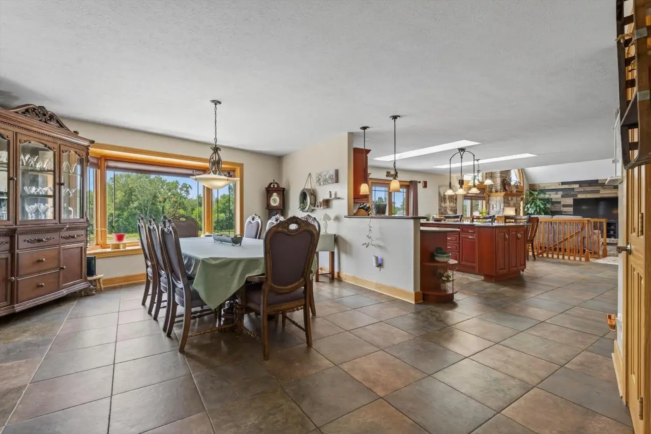 Sitting on 14 acres, this modern ranch with Craftsman flair features, vinyl shake and stone siding, cedar accents, and a welcoming arched entry with a 9x24 covered porch. Inside, enjoy a main floor office, spacious kitchen and dining area, and a vaulted 15 living room ceiling with a gas log fireplace. The 15x20 primary suite includes a private deck, updated bath, and oversized walk-in closet. A spacious 2nd bedroom and full bath. The finished lower level offers a large family room, kitchenette, two bedrooms, full bath, and poolside half bath with changing area. Outside features 2 new composite decks, one is a private deck from the Primary bedroom the other is off the eating area both have beautiful views of the acreage and wildlife that abounds. a 20x40 inground pool, covered patio wit a new hot tub, impressive boulder retaining wall, and 40x60 barn with 2 oversized doors and a 15 sliding door, cement floors and electric. There is a mixture of land, some flat, some wooded and some lowland. Wood boiler heat or propane.