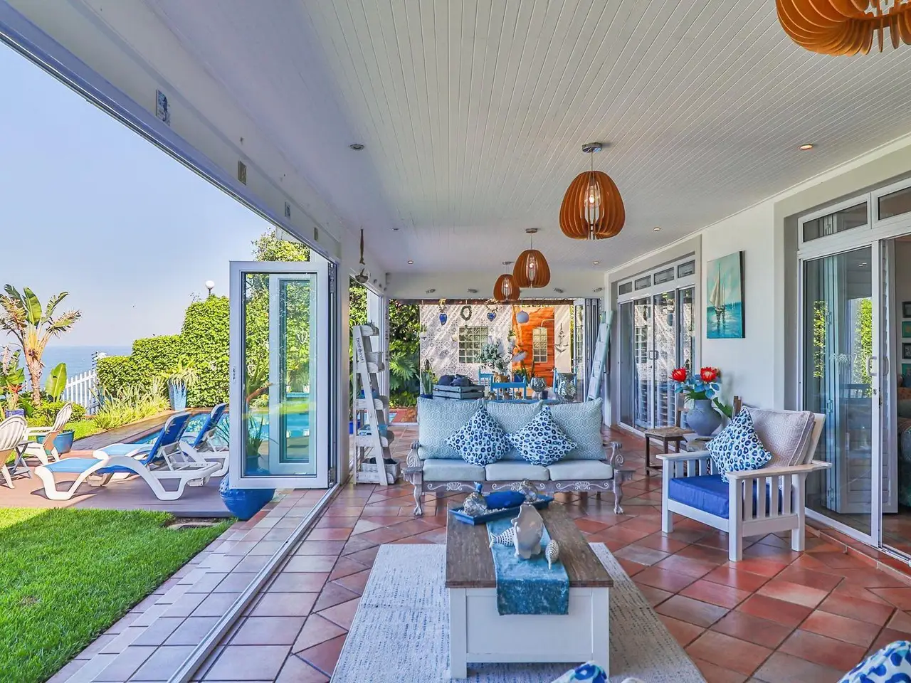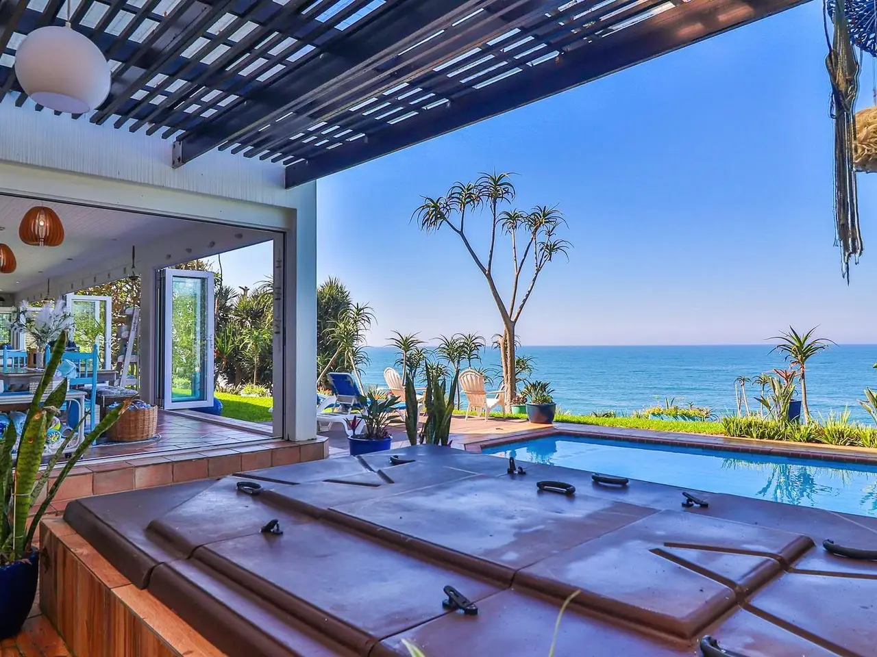 Oceanfront Elegance with Direct Beach Access & Income-Generating Flatlets – Sheffield Beach This breathtaking beachfront residence is a rare gem, perfectly positioned on an elevated stand in Sheffield Beach with sweeping 180-degree ocean views and direct private access to the beach. Ideal as a multi generational home or an investment property, it features a luxurious main home and three self-contained income-generating flatlets—each offering complete privacy and panoramic sea views. Main Residence The heart of the home is a glass-enclosed entertainment veranda that runs the full width of the property, featuring a built-in bar and multiple seating zones designed to capture the horizon. Seamlessly flowing from the interior living areas, this space opens onto lush level lawns, an expansive sun deck, and a sparkling pool overlooking the ocean—blurring the lines between indoor sophistication and outdoor relaxation. The open-plan living area includes a chef’s kitchen with granite countertops, SMEG gas hob, electric oven, and a scullery. The dining and lounge spaces are flooded with natural light and ocean views, effortlessly connecting to the outdoor jacuzzi and built-in braai area—perfect for entertaining family and friends by the sea Upstairs, four spacious bedrooms all face the sea, with three of them sharing a large balcony. The private master wing is a true retreat, boasting a lounge, walk-in dressing room, elegant en-suite bathroom, and a study—all with glass-stacking windows framing uninterrupted ocean vistas. Flatlets & Investment Potential Set apart from the main home, the three fully self-contained one-bedroom flatlets each include a kitchenette, en-suite bathroom, and access to their own pool area and shared beach access gate. These are currently achieving excellent returns as short-term holiday rentals, offering a ready-made income stream. Beach Access & Outdoor Living Enjoy private stairways meandering through manicured gardens to your exclusive beachfront gate, with a sunrise or sunset viewing deck midway—ideal for evening cocktails with the sound of crashing waves below. Extra Features • Inverter backup system • Two swimming pools & jacuzzi • Three garages + additional parking • Staff accommodation • Full electric fencing • Security roller doors & American shutters • High-definition security cameras linked to a control room • Alarm beams and intercom access system This is coastal living at its finest—where every sunrise is a masterpiece and every day feels like a holiday. Just minutes from Ballito’s top schools, restaurants, and retail precincts, yet cocooned in absolute tranquillity.