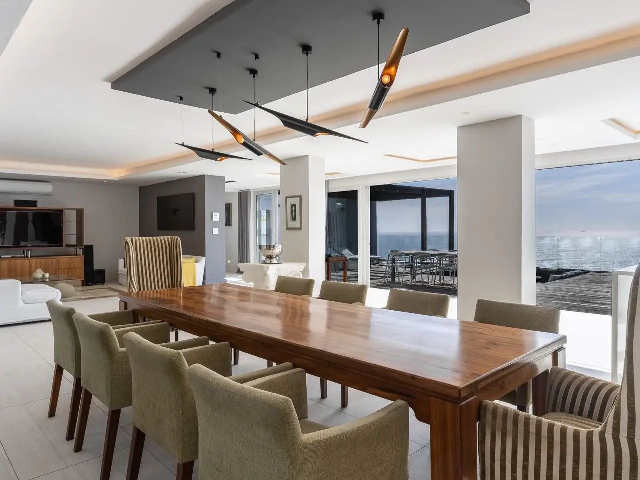 180 degree views that will take your breath away. Enjoy glorious sunsets overlooking the Atlantic from either the pool or the jacuzzi. Set up against the mountain, located on one of the most prestigious streets in Cape Town we have this Modern and contemporary 3 bedroom en-suite luxury home to offer for sale. Glorious, beautifully appointed open plan kitchen with gas hob (seperate scullery/laundry) opens onto sizeable living area with sliding doors leading onto expansive wooden decked verandah and unbeatable ocean views and to be enjoyed from the pool or jacuzzi. Outdoor barbeque area. Master suite has private lounge and walk in dressing room. Secluded back garden area, wine cellar, elevator access, double garage and multiple off street parking. Bantry Bay is an exclusive, wind free suburb located on the slopes of Lion's Head Mountain overlooking the Atlantic Ocean and is close by to the world famous Clifton beaches and Table Mountain.