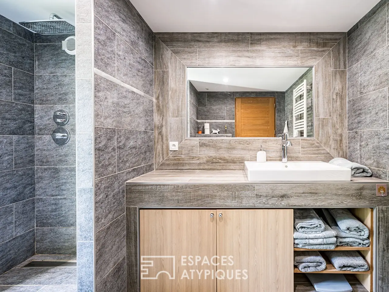Located on the heights of Albertville, in a preserved and residential setting, this 250 sqm timber-frame villa with elegant architecture offers a rare living environment, facing south and enhanced by its surroundings. It embodies the perfect balance between comfort and tranquility. The entrance sets the tone, leading into a comfortable living room with a fireplace that flows seamlessly into a fitted open kitchen and dining area. The double-height ceiling in the living room, bathed in natural light, ensures brightness throughout the space. On this level, you will also find a bedroom with en-suite shower room, an office, a laundry room, as well as a stunning living area whose large bay windows extend naturally onto the terrace and garden. The upper floor is accessed via a spacious mezzanine overlooking the living room. Here, the night area offers three additional bedrooms, one of which has an en-suite shower room and dressing. A bathroom completes this floor. Outdoors, a beautiful 58 sqm outbuilding offers additional living space, perfect for hosting friends, painting, or DIY projects. A landscaped garden invites relaxation or convivial gatherings: a bamboo terrace surrounds a lovely heated swimming pool (12.50 x 4 m) with integrated cover. A wellness area with jacuzzi and a pool house complete this haven. A carport and additional outdoor parking spaces enhance the outstanding features of this family home. ENERGY CLASS: D / CLIMATE CLASS: B Estimated average annual energy costs for standard use, based on 2024 energy prices: between €3,460 and €4,750. Information on the risks to which this property is exposed is available on the Georisques website for the relevant zones: www.georisques.gouv.fr. REF. 2044EA Additional information * 8 rooms * 5 bedrooms * 1 bathroom * 3 shower rooms * Outdoor space : 5575 SQM * Parking : 6 parking spaces * Property tax : 2 791 € Energy Performance Certificate Primary energy consumption d : 194 kWh/m2.year High performance housing