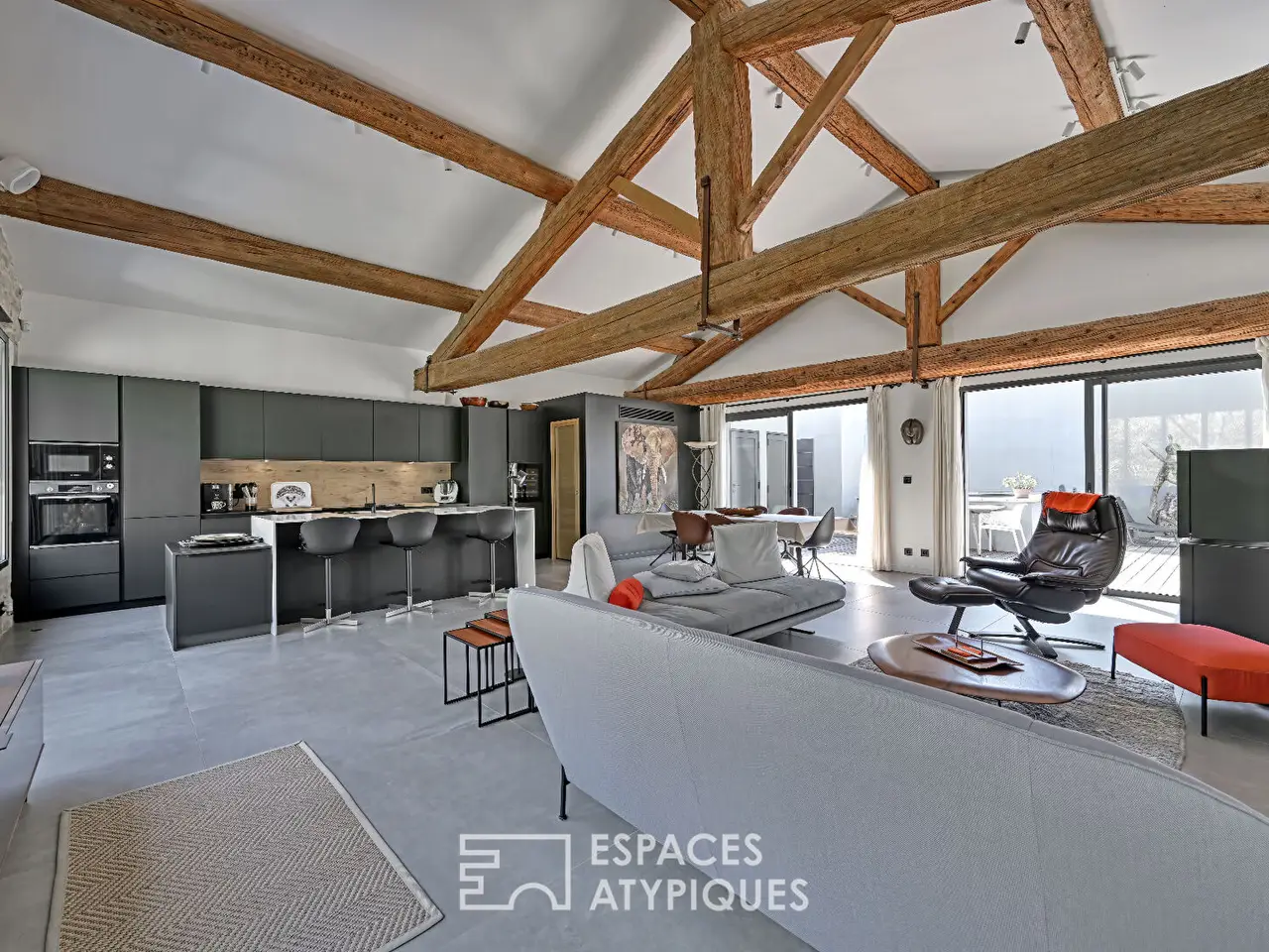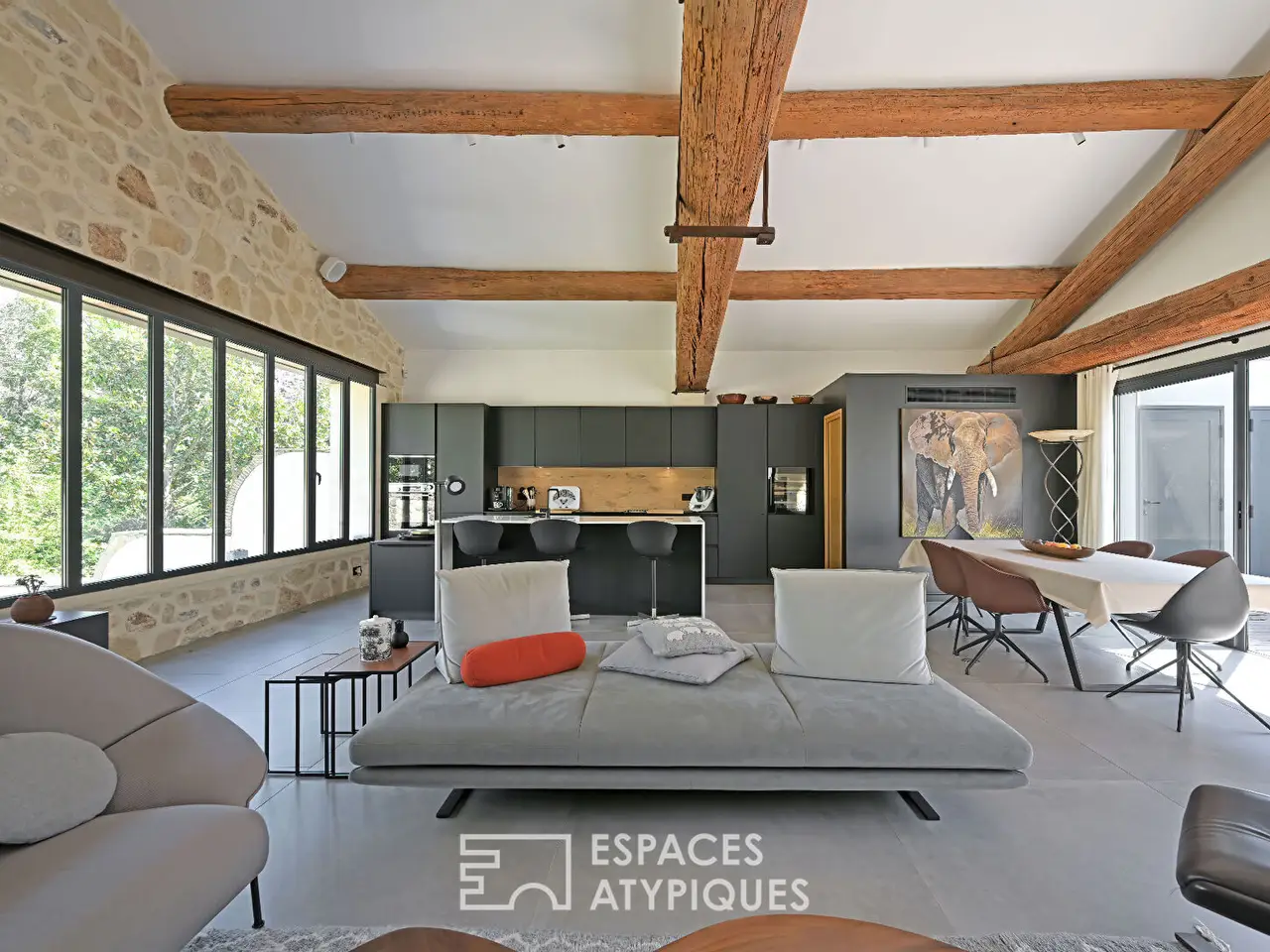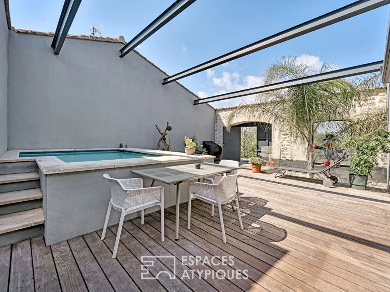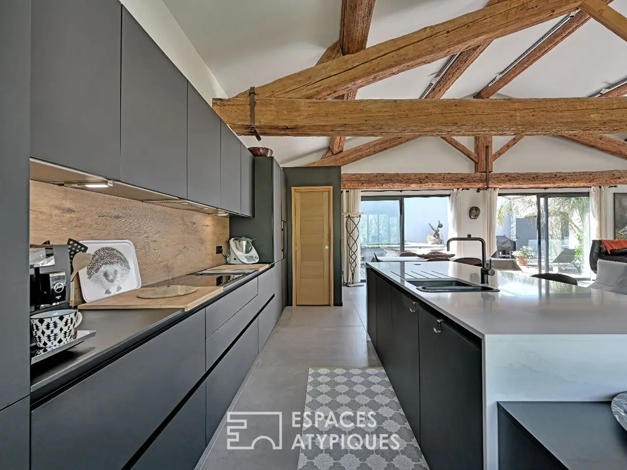 Located in Lattes, just five minutes from Montpellier and ten minutes from the beaches, this former farmhouse, renovated in 2019, combines authentic charm with contemporary comfort. Nestled in the heart of nature yet close to amenities and the tramway, it offers an ideal living environment for lovers of unique properties. At the entrance, a fitted cloakroom and separate toilet provide functionality and practicality. The vast, dual-aspect living room, bathed in natural light, reveals beautiful high ceilings and exposed beams that highlight the character of the place. The space opens onto a fully equipped kitchen with a utility room. The intimate sleeping area consists of three suites. The master bedroom, a true cocoon, features a large dressing room, a refined bathroom with a walk-in shower and a slipper bathtub, and direct access to a private patio. The exterior spaces extend the elegance of the interior spaces. A first patio, designed as a relaxation area, houses a swimming pool conducive to convivial moments. The second patio, adjoining the master suite, ensures calm and discretion. The preserved natural environment gives a peaceful atmosphere, while being in close proximity to the city center and communication routes. A large garage and two parking spaces complete this property. Perfectly renovated with noble materials, this farmhouse offers high-end services: full air conditioning, Bose audio system in all rooms and pellet stove for a warm atmosphere. ENERGY CLASS: C - 127 / CLIMATE CLASS: A - 4Estimated average amount of annual energy expenses for standard use, established from the energy prices of January 1, 2021: between EUR1,550/year and EUR2,140/year. Information on the risks to which this property is exposed is available on the Georisques website for the areas concerned. REF. 10438Additional information* 4 rooms* 3 bedrooms* 3 shower rooms* Outdoor space : 145 SQM* Parking : 4 parking spaces* Property tax : 3 300 €Energy Performance CertificatePrimary energy consumptionc : 127 kWh/m2.yearHigh performance housing*A*B*127kWh/m2.year4*kg CO2/m2.yearC*D*E*F*GExtremely poor housing performance* Of which greenhouse gas emissionsa : 4 kg CO2/m2.yearLow CO2 emissions*4kg CO2/m2.yearA*B*C*D*E*F*GVery high CO2 emissionsEstimated average amount of annual energy expenditure for standard use, established from energy prices for the year 2025 : between 1550 € and 2140 €Agency feesThe fees include VAT and are payable by the vendorMediatorMediation Franchise-Consommateurswww.mediation-franchise.com29 Boulevard de Courcelles 75008 ParisInformation on the risks to which this property is exposed is available on the Geohazards website : www.georisques.gouv.fr