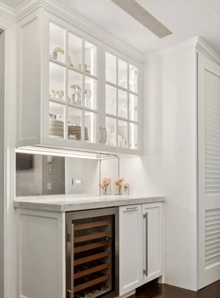 Mint Park Avenue Renovation This meticulously renovated and exquisitely decorated eight into seven room apartment is a blend of timeless architectural charm and modern sophistication. Designed by renowned architect J.E.R. Carpenter, 655 Park Avenue occupies a full block between 67th and 68th Streets and is centered around a courtyard garden facing Park Avenue. Apartment 5E is accessed from a semi-private vestibule that opens to a spacious entry foyer which features a bespoke coat closet designed to blend seamlessly with the sophisticated aesthetic of the space. The foyer flows into the graciously proportioned living room which has multiple seating areas, a wood burning fireplace and abundant natural light. Adjacent is the elegant formal dining room with ample seating for grand entertaining. The large third bedroom, currently being used as a library, has custom lacquered millwork and access to a windowed marble bathroom. The generously scaled second bedroom shares entry to the marble bath. The multi-windowed kitchen is outfitted with marble countertops and beautiful custom cabinetry that offer maximum storage. Appliances include a Sub-Zero refrigerator, Wolf double wall oven, Wolf induction stove top with vented range hood and a Sharp microwave drawer. A pantry area with overhead cabinetry includes a temperature controlled wine cellar and an icemaker. A vented washer/dryer is conveniently closeted in the hallway leading to the third full bathroom and the windowed staff/fourth bedroom. The expansive primary suite features handsome built-in storage, three closets and en suite marble bathroom with a double vanity sink. Additional notable elements include central air-conditioning, new thermal windows, classic herringbone floors, generous closets and handsome prewar details. 655 Park Avenue offers shareholders impeccable service that includes full-time doormen, elevator operators and a live-in resident manager. Storage is available; but not guaranteed. 50% financing permitted. This prime Upper East location offers proximity to world-class museums, restaurants, shopping and Central Park.