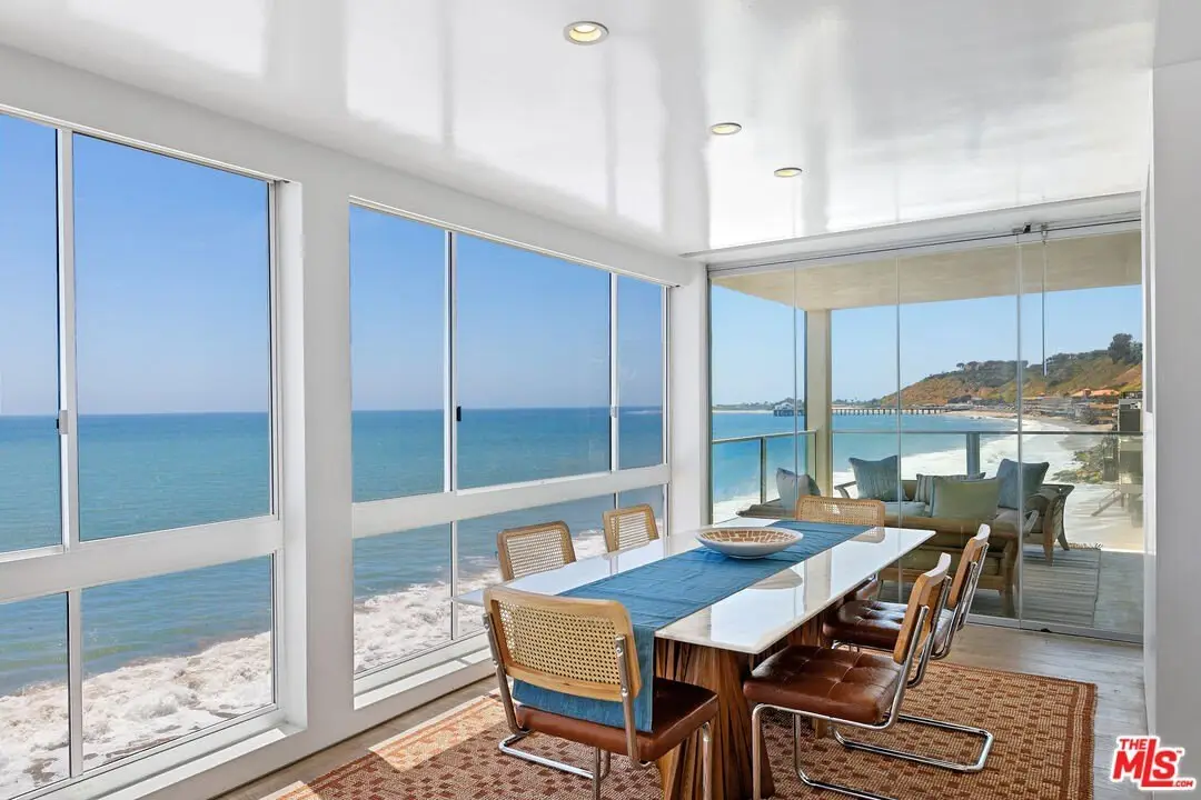 Discover the ultimate in coastal sophistication at this stunning oceanfront residence on Carbon Beach, located within Malibu's exclusive "Outrigger" complex. Offering private access to a sandy beach, along with a pool and spa reserved solely for residents, this home delivers true resort-style living just steps from Malibu's most iconic spots, including Nobu, Soho House, and the Malibu Pier. Expansive floor-to-ceiling glass walls capture uninterrupted, panoramic views of the ocean and coastline from every room even the spa-like primary bathroom. Fall asleep to the rhythm of the waves and wake up to breathtaking sunsets from the comfort of your bed. This sun-drenched two-bedroom, two-bath retreat features custom French white oak flooring and high-end finishes throughout. Designed for effortless indoor-outdoor living, the open layout flows seamlessly onto a private patio perfect for quiet mornings or warm summer evenings by the sea.