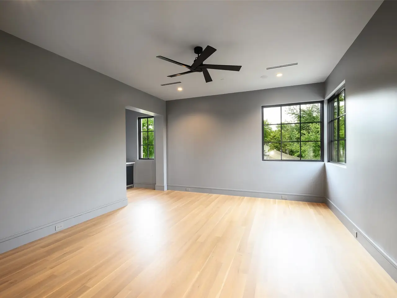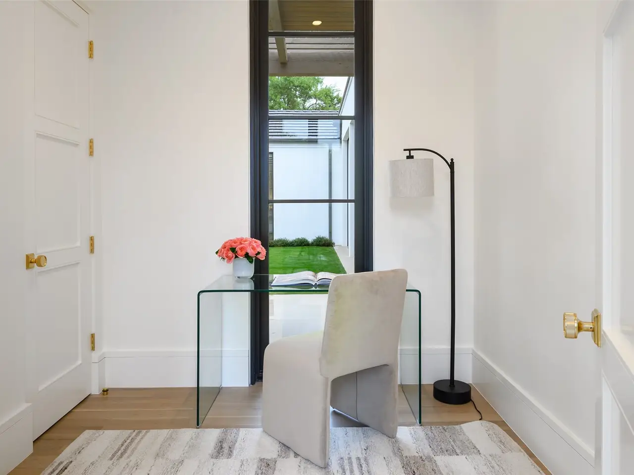 Situated on a prominent half-acre corner lot in one of Dallas' most coveted neighborhoods, 4407 San Gabriel Drive is a masterfully crafted custom home, completed in August 2025 by the esteemed SHM Architects. This architectural gem seamlessly blends clean, modern lines with warm, timeless materials to create a sophisticated yet inviting living environment tailored for today's discerning homeowner. Offering four spacious bedrooms, four full baths, and two elegant powder rooms, the home is designed with flexibility in mind - one upstairs bedroom can easily serve as a state-of-the-art media room. A private study provides the ideal space for working from home, while a dedicated gym promotes health and convenience. At the heart of the home lies an expansive great room, anchored by dramatic sliding glass doors that open to the outdoor living area, blurring the line between indoors and out. The dining room, wrapped in floor-to-ceiling windows, is filled with natural light - perfect for both intimate dinners and lively gatherings. The chef's kitchen is a showstopper, featuring Gaggenau appliances, sleek custom cabinetry, and a fully equipped butler's pantry with a built-in coffee machine - ideal for seamless entertaining. The primary suite, located on the main level for privacy, is a true retreat with a sunlit sitting area overlooking the backyard, dual walk-in closets, and a spa-inspired bath with dual vanities, soaking tub, and glass-enclosed shower. Step outside to a private oasis by Terrain Workshop, where curated landscaping surrounds a sparkling pool, and a covered patio with an outdoor kitchen invites year-round alfresco living. An attached two-car garage completes this thoughtfully designed home. Every inch of 4407 San Gabriel Drive reflects exceptional craftsmanship, timeless design, and architectural excellence in the heart of Dallas. Buyer and buyer's agent to confirm all measurements, lot size, and school info.