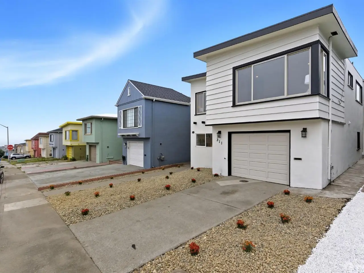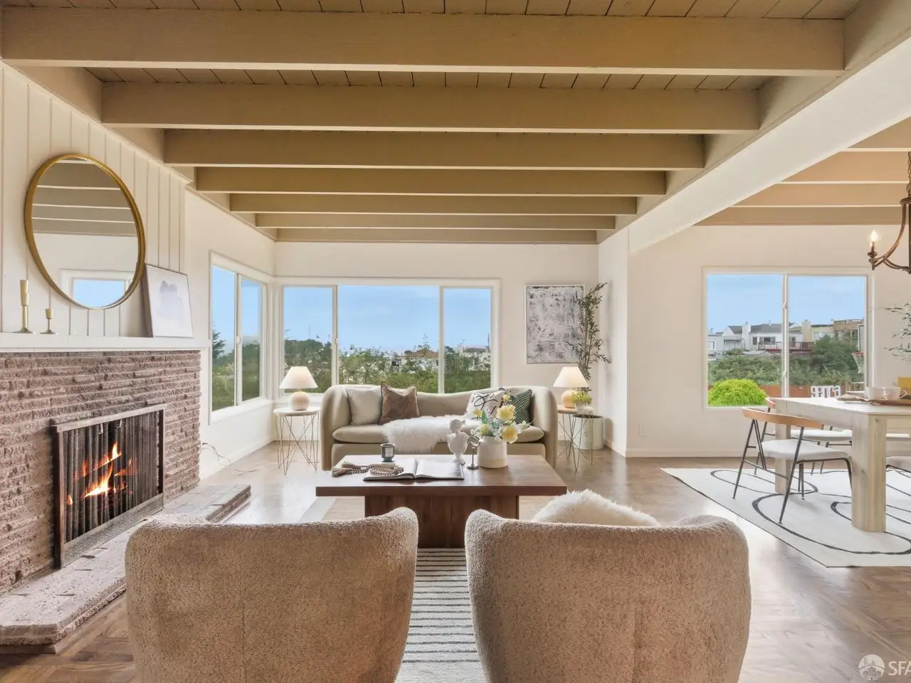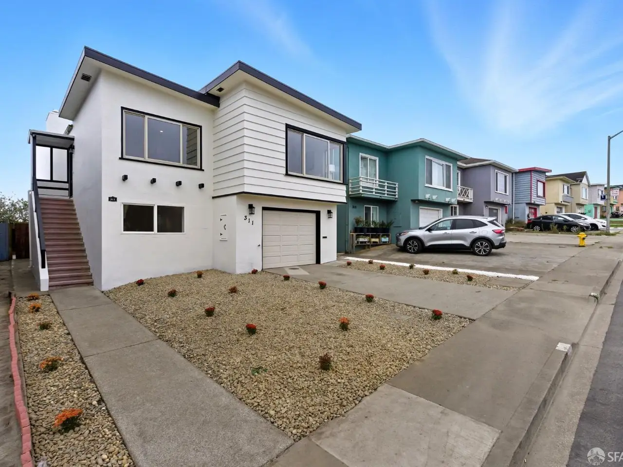 Breathtaking views and turnkey sophisticated style define this classic Doelger home at 311 Skyline Drive. The desirable floor plan is refreshed with style, featuring newly refinished parquet hardwood flooring, recessed lighting, and fresh paint inside and out. The spacious living room, complete with a cozy fireplace and picturesque windows, frames an iconic Bay Area panorama: the Pacific Ocean, the Golden Gate Bridge, and the Sutro Tower. The adjacent dining room flows into the all-new kitchen, a showcase of modern style with sleek quartz countertops, stainless steel appliances, and brand new checker cabinets. The main level hosts two bright bedrooms and an updated bathroom. Below, an ensuite third bedroom and a versatile family room open directly via a large sliding glass door to the easy-maintenance backyard. 2-car tandem garage plus a driveway parking. Nestled in the peaceful Westlake neighborhood, this location is closed to Skyline Plaza, Westlake Shopping Center, Serramonte Center, BART, coastal trails and effortless connection to San Francisco. This quiet enclave combines suburban tranquility with exceptional convenience.