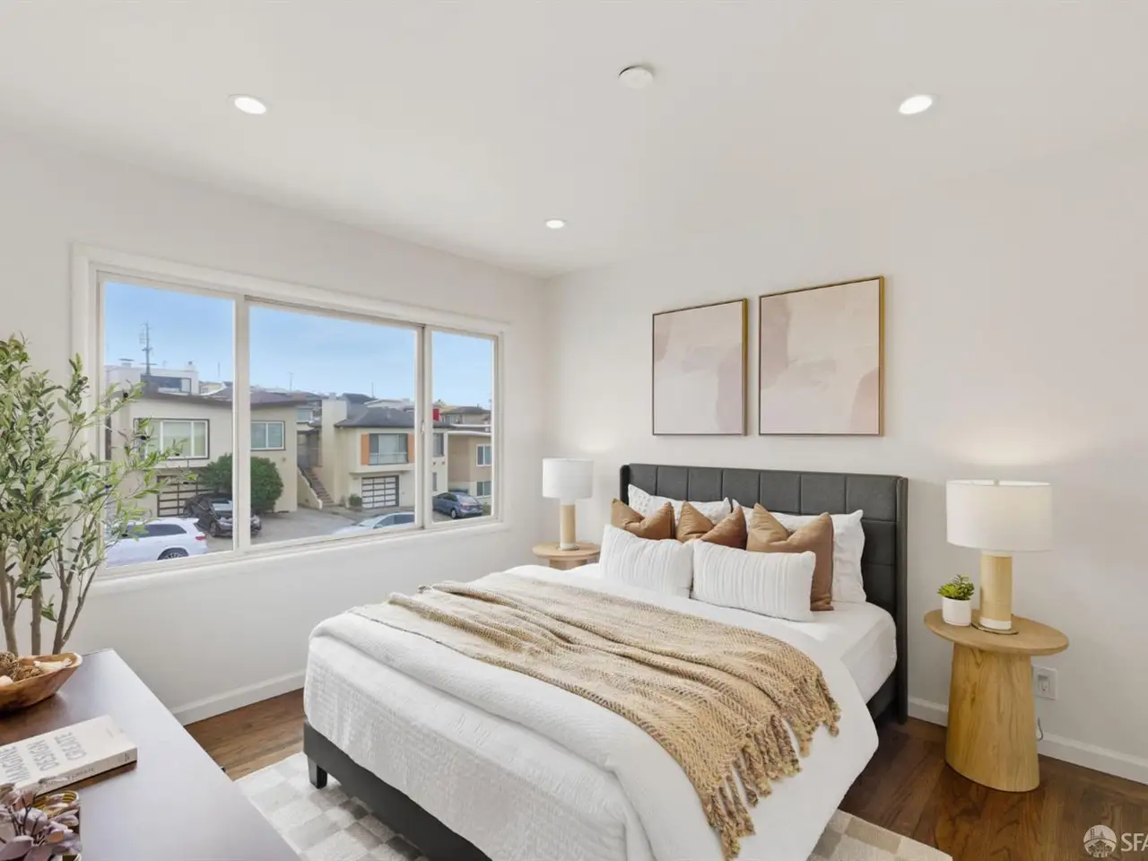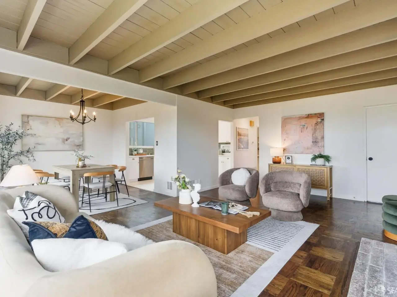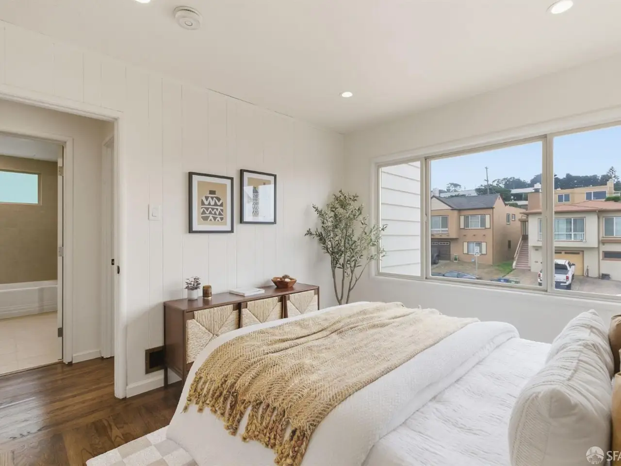 Breathtaking views and turnkey sophisticated style define this classic Doelger home at 311 Skyline Drive. The desirable floor plan is refreshed with style, featuring newly refinished parquet hardwood flooring, recessed lighting, and fresh paint inside and out. The spacious living room, complete with a cozy fireplace and picturesque windows, frames an iconic Bay Area panorama: the Pacific Ocean, the Golden Gate Bridge, and the Sutro Tower. The adjacent dining room flows into the all-new kitchen, a showcase of modern style with sleek quartz countertops, stainless steel appliances, and brand new checker cabinets. The main level hosts two bright bedrooms and an updated bathroom. Below, an ensuite third bedroom and a versatile family room open directly via a large sliding glass door to the easy-maintenance backyard. 2-car tandem garage plus a driveway parking. Nestled in the peaceful Westlake neighborhood, this location is closed to Skyline Plaza, Westlake Shopping Center, Serramonte Center, BART, coastal trails and effortless connection to San Francisco. This quiet enclave combines suburban tranquility with exceptional convenience.
