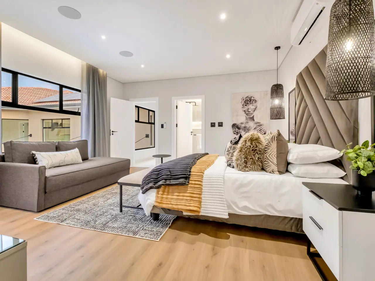 This magnificent residence is a true masterpiece – a symphony of whites, blacks, and greys that come together in perfect harmony. Recently completed with a brand-new renovation and crafted under the vision of a professional interior designer, the home is a flawless blend of contemporary elegance and timeless sophistication. All kitchen appliances and TV are included, with the option to purchase the bespoke furniture and décor for a complete, move-in-ready lifestyle. From the very first impression, this home captivates. Its striking façade and meticulous attention to detail create unmatched street appeal, while the elevated open-stand position ensures uninterrupted, breath-taking views of the golf course, clubhouse, and rolling surrounds. With abundant off-road parking for up to six vehicles, plus two expansive double garages accommodating a further four cars, practicality meets prestige at every turn. Ground Floor: Open-Plan Luxury The entrance opens into a soaring double-volume space, instantly enveloping you in light and openness. At the heart of the home lies the gourmet double-volume kitchen – a chef’s dream with sleek finishes, an enormous pantry, and a fully fitted scullery. The breakfast nook and intimate formal lounge extend seamlessly from this central hub, offering serene views of the courtyard garden and the expansive pool. The open-plan entertainment wing epitomises effortless indoor-outdoor living, featuring two inviting lounges, a grand dining space, and a magnificent pub. Integrated design ensures flow and connection, while a built-in braai and dual guest cloakrooms complete this impressive area. A separate downstairs wing houses a fourth en-suite bedroom with dressing room, enjoying private garden access – ideal for guests or extended family. Upstairs: A Retreat of Pure Indulgence A striking floating lightwood staircase, beautifully underlit at night, leads to the upper level. Here, three magnificent bedroom suites are complemented by an expansive enclosed pyjama lounge with sweeping estate views and an airy study area. The main suite is nothing short of spectacular – oversized, opulent, and crafted to the highest standard. It boasts a designer dressing room and a five-star en-suite bathroom, where luxury and serenity merge. Two additional en-suite bedrooms, each with its own dressing room, provide comfort and privacy for family or guests. Outdoors & Features Set on one of the largest stands within the estate, the property offers landscaped gardens with a full irrigation system. The oversized pool becomes a central feature, framed by the home’s entertainment areas. Additional highlights include: • En-suite staff accommodation • 16 kW solar and inverter system for sustainable living • Seamless balance of openness, privacy, and spectacular views This is more than a home – it is a lifestyle statement, designed for the discerning buyer who values exclusivity, sophistication, and effortless comfort.
