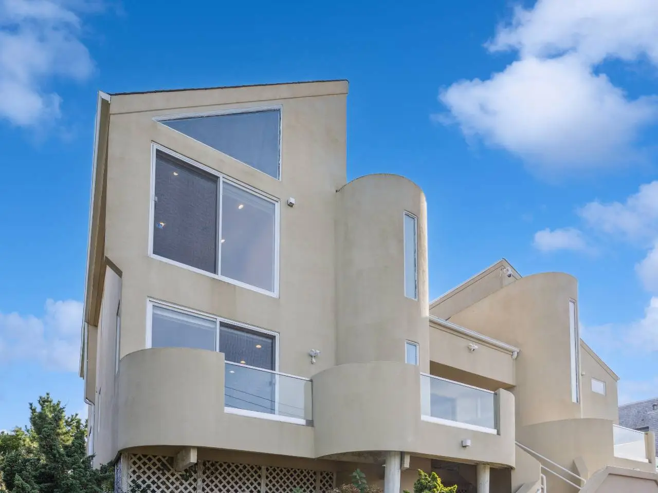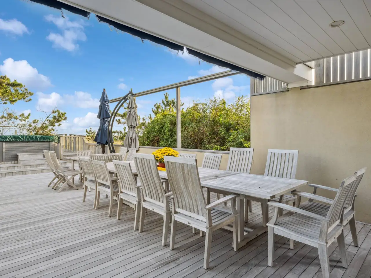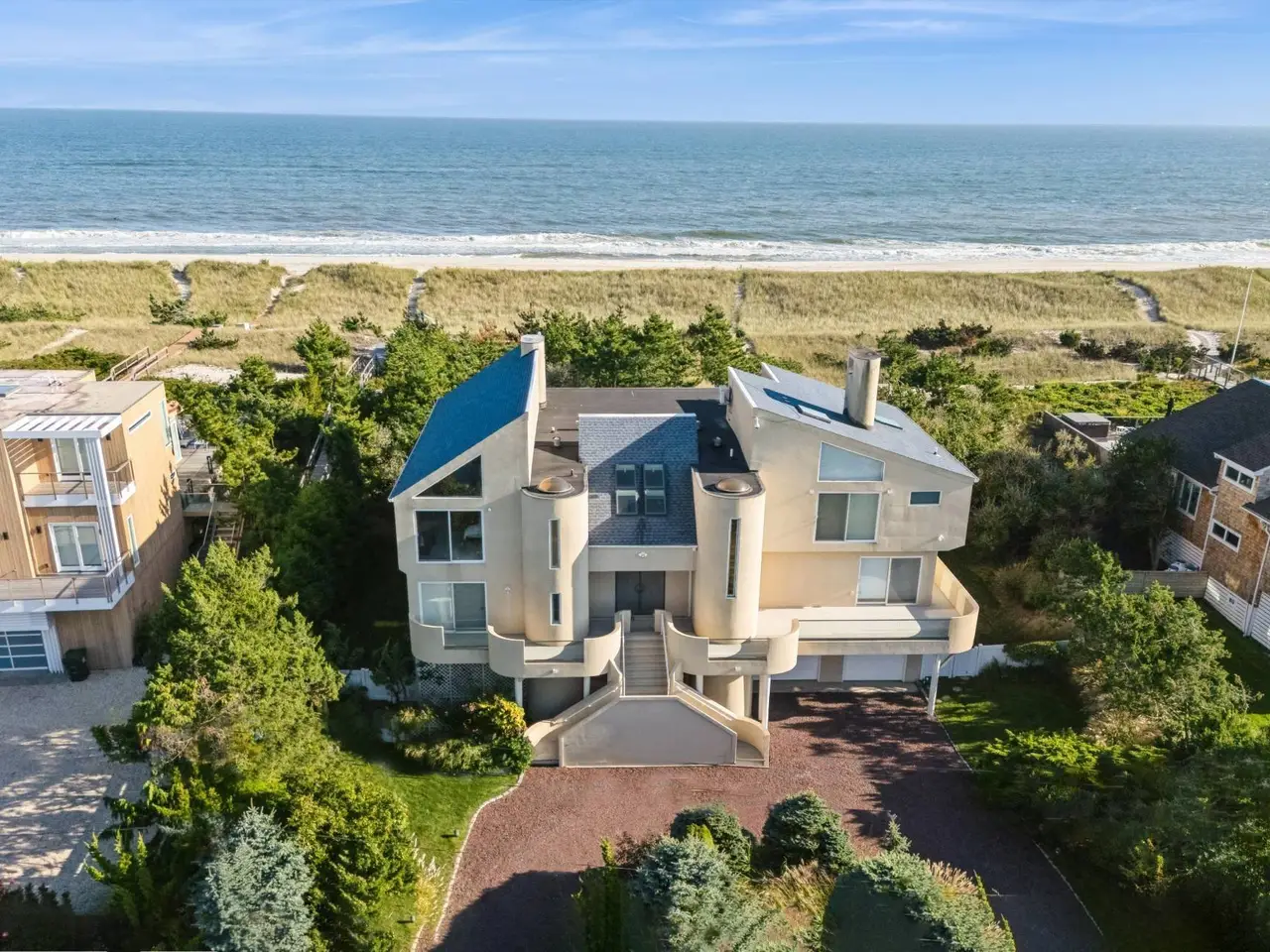 This five-bedroom oceanfront beach house offers 132 feet of beach frontage with sweeping ocean views. The welcoming entry foyer leads to an expansive sun-filled living room with fireplace, dining area and den. The updated kitchen with quartz and granite countertops, Wolf stove, and Sub-zero refrigerator also has a cozy dining space with fabulous sunset views. A guest suite with bay views and an additional bedroom with access to the pool are on the main floor. Two additional en-suite bedrooms on the second level enjoy water views. The primary suite leads to an open terrace overlooking the pool area with panoramic ocean and bay views. Outdoor living is outstanding including a heated gunite pool, hot tub, and expansive deck for dining and entertaining. Your exclusive boardwalk leads directly from the deck to the sandy beach and rolling waves. Whether as a summer escape or a year-round residence, this oceanfront gem offers an extraordinary opportunity to create your own Hamptons haven in the truly special beach community of Westhampton Beach. Just minutes away from Main Street and the vibrant revitalized village with new boutique shops, restaurants, new movie theater, and Performing Arts Center.