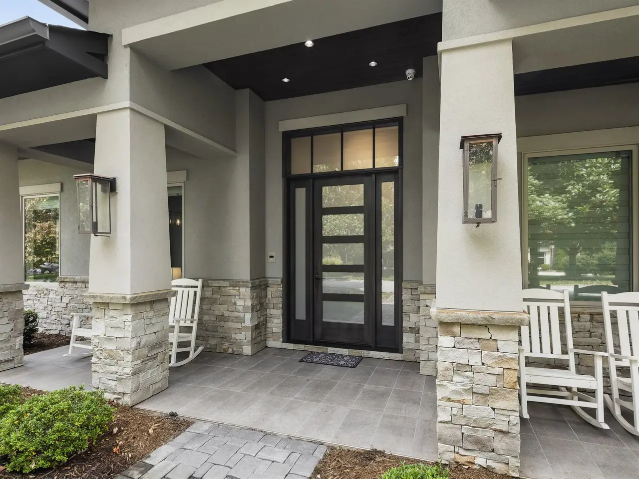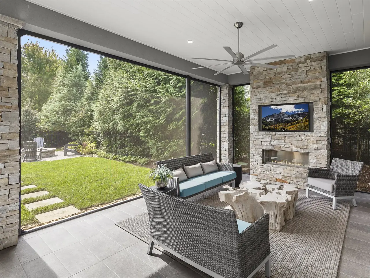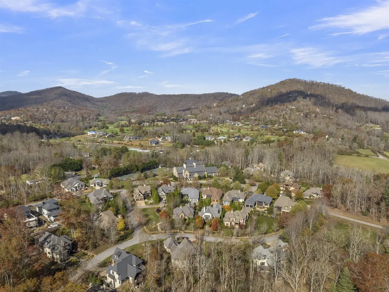 This stunning property seamlessly blends modern comfort with nature's beauty. The charming home features a welcoming facade and beautifully landscaped yard, providing a serene setting. Inside, the one-level open-concept living area boasts high ceilings and expansive windows that fill the home with natural light. The spacious living room flows into a modern kitchen equipped with high-end appliances and a cozy breakfast nook. With three generously-sized bedrooms, including a luxurious master suite, each with an en-suite bathroom, this home offers ample space for relaxation for you and your guests. The expansive rear patio, complete with a fireplace, is perfect for outdoor dining or enjoying morning coffee while listening to the soothing sounds of nature. Conveniently located across from the Wellness Center and just a short drive from Asheville, you can easily access artisanal shops, renowned restaurants, and outdoor activities in the Blue Ridge Mountains.