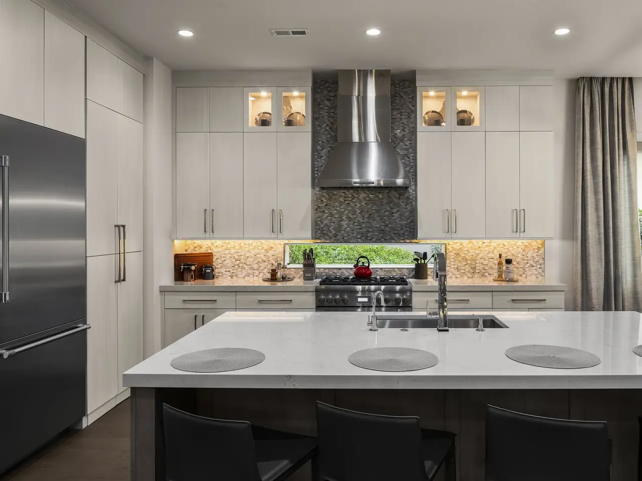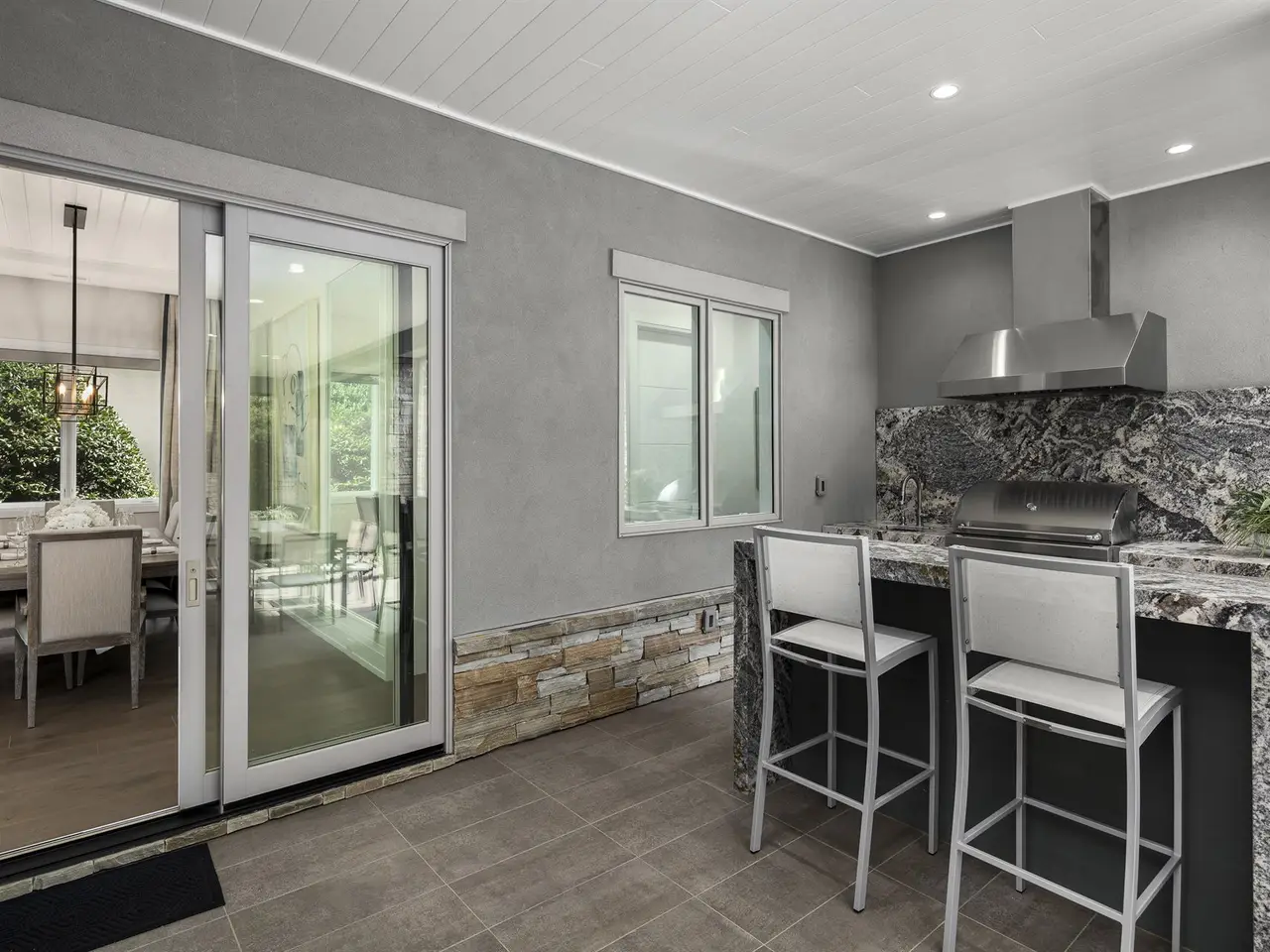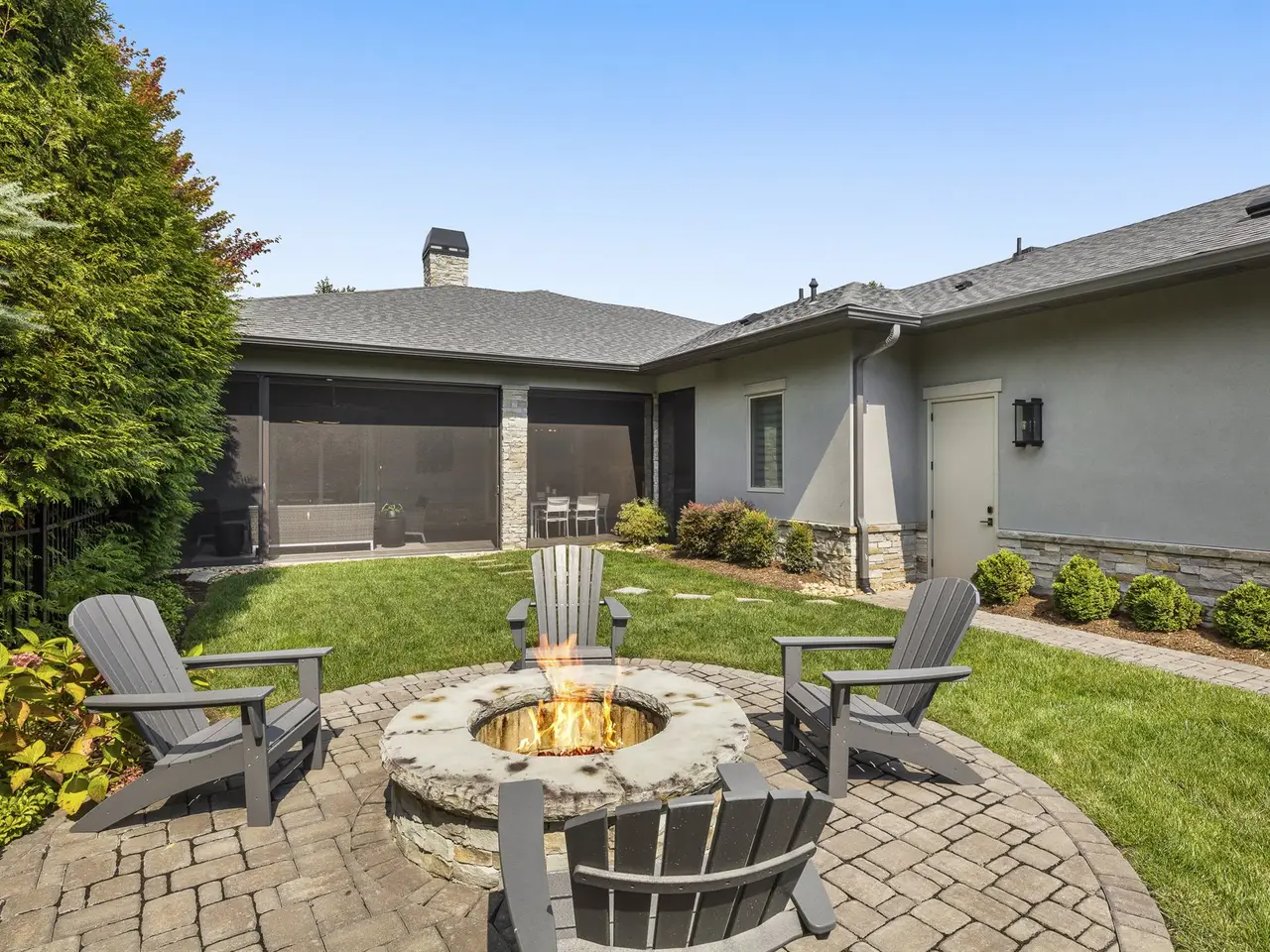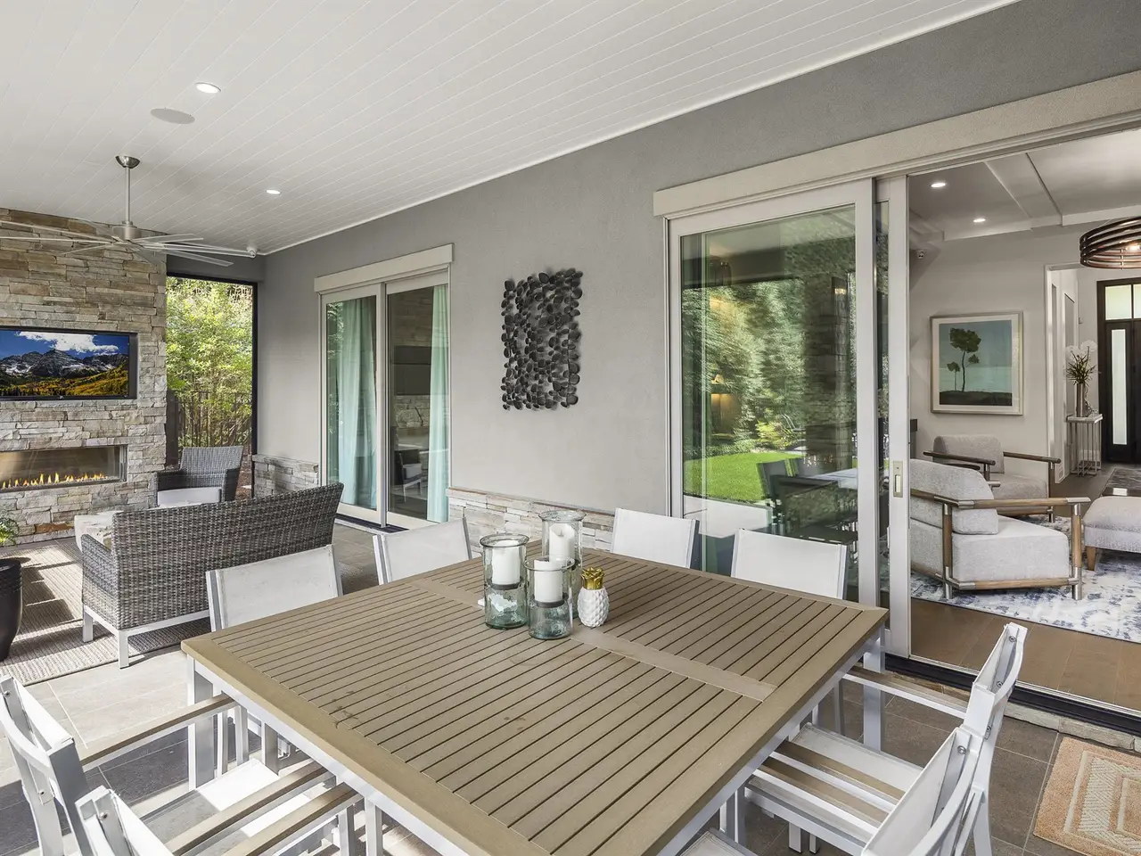 This stunning property seamlessly blends modern comfort with nature's beauty. The charming home features a welcoming facade and beautifully landscaped yard, providing a serene setting. Inside, the one-level open-concept living area boasts high ceilings and expansive windows that fill the home with natural light. The spacious living room flows into a modern kitchen equipped with high-end appliances and a cozy breakfast nook. With three generously-sized bedrooms, including a luxurious master suite, each with an en-suite bathroom, this home offers ample space for relaxation for you and your guests. The expansive rear patio, complete with a fireplace, is perfect for outdoor dining or enjoying morning coffee while listening to the soothing sounds of nature. Conveniently located across from the Wellness Center and just a short drive from Asheville, you can easily access artisanal shops, renowned restaurants, and outdoor activities in the Blue Ridge Mountains.