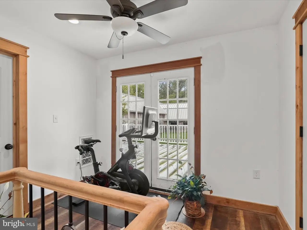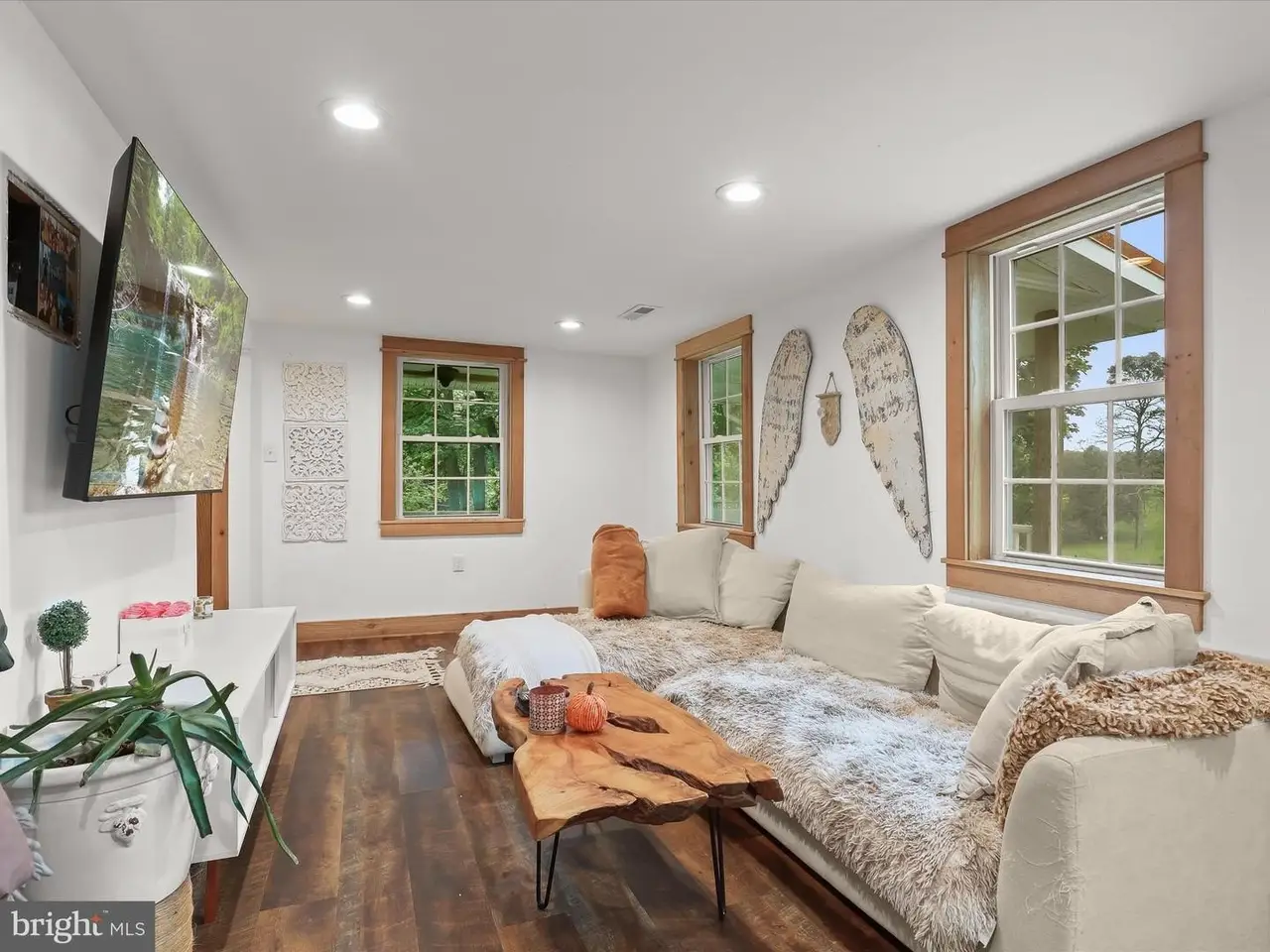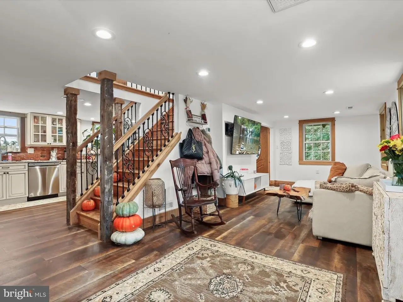 Nestled on a picturesque 10.86-acre pastoral lot, this charming farmhouse offers the perfect blend of rustic charm and modern amenities, featuring two bedrooms and a full bathroom. A welcoming covered wraparound front porch greets you, leading into a bright interior adorned with a neutral color palette, recessed lighting, and sun-filled windows complemented by luxury vinyl plank flooring. The open-concept main level showcases a relaxing living area and a dining space that boasts a brick fireplace with a wood-burning stove, perfect for cozy gatherings. The well-equipped kitchen impresses with stainless steel appliances, granite counters, a brick backsplash, soft-close cabinets, a breakfast bar, and a pantry. This level also includes a convenient laundry room, along with versatile unfinished storage and bonus rooms. Upstairs, you will find the two bedrooms and the full bathroom with a tub shower. A nook at the end of the hallway could easily function as an office or workout space with French doors that lead to the rear balcony. A utility room for additional storage completes the upper level. Outside, the expansive barn is equipped with electricity and two stalls that open into one of the fenced pastures. A separate shed provides even more storage. This retreat is ideal for those seeking tranquility and space to roam.