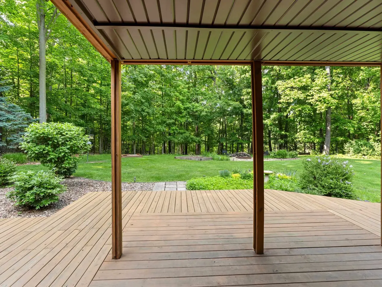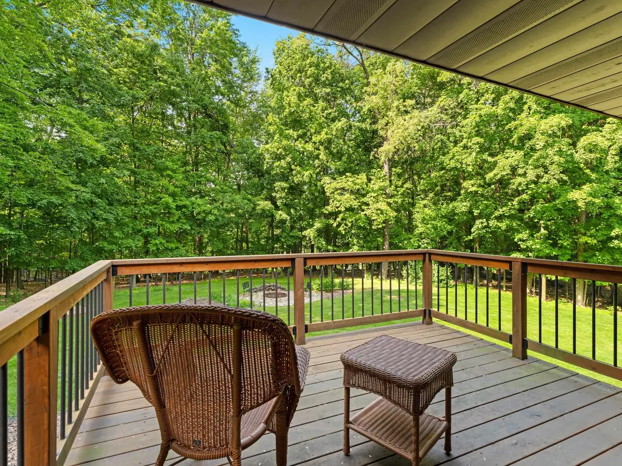 Secluded Wooded Retreat! Beautiful & meticulously cared for spacious home. Modern & upgraded amenities; architectural character and charm. Sought after private wooded location! 2 Outbuildings; lower is 30 X 50. Sits on almost 5 acres with water access and serene water views. Relax in the hot tub or by the fire pit and enjoy the magnitude of wildlife. Home offers fully renovated kitchen/dining with granite counter tops and ss appliances. 2 living rooms; wb fireplace. Sunroom with in-floor heat and panoramic sunset views. Mother-in-law suite on main level with heated floors. Optional 3 bedrooms upstairs including Master which features vaulted ceilings, walk in tile shower and walk-in closet. Walkout basement with ample storage. Close to New Zoo, Reforestation Camp and more. A must-see!