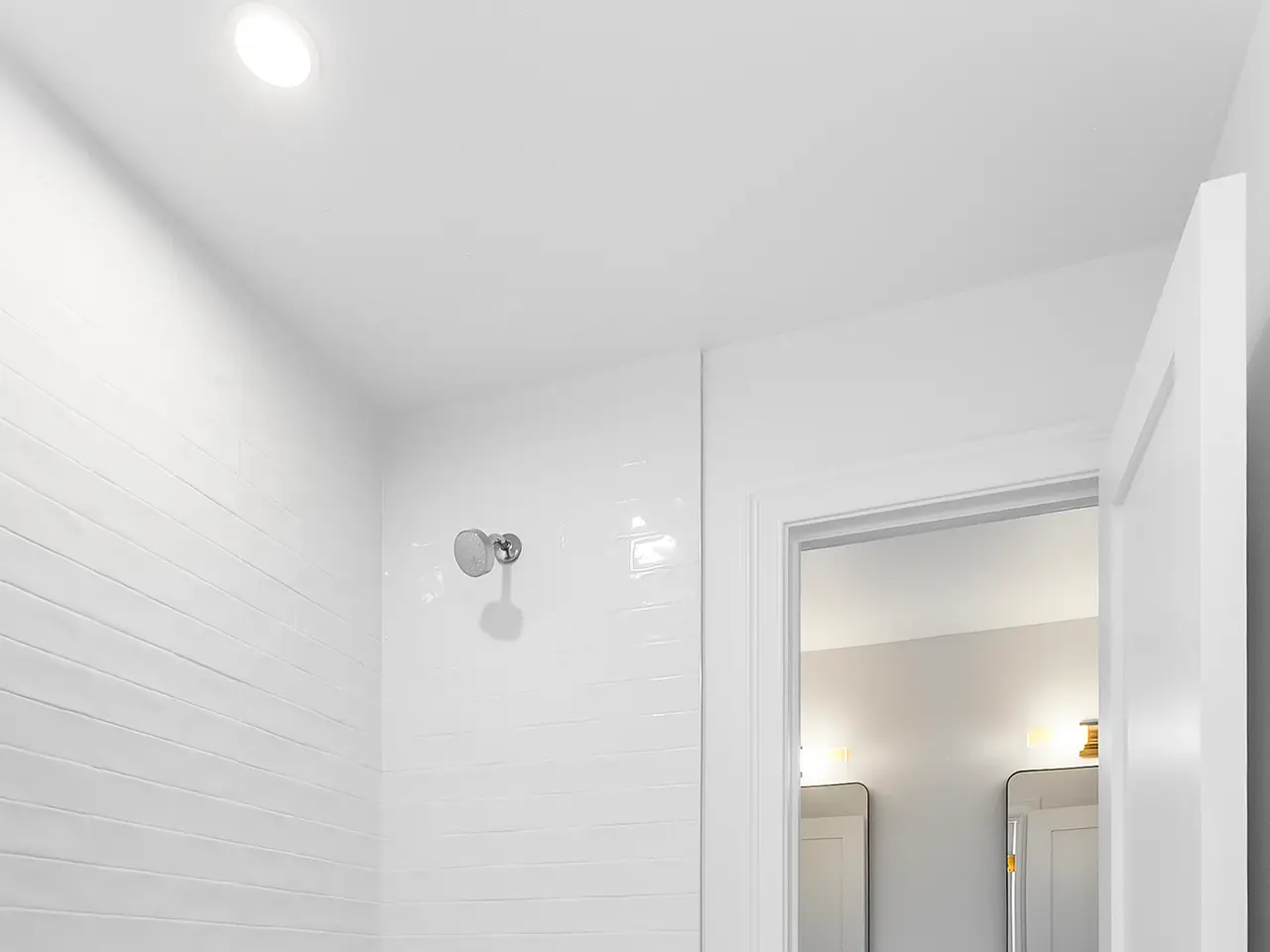 • Glass-enclosed walk-in shower in primary bathroom