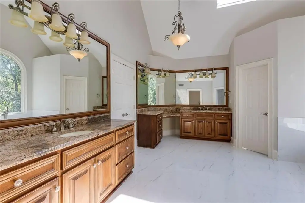 This stunning home, beautifully designed and thoughtfully renovated, sits on over an acre in a private cul-de-sac in the desirable Jeff Ferry Manor neighborhood. Surrounded by professionally landscaped grounds, the home has been impeccably maintained and offers the perfect blend of elegance, comfort, and modern sophistication. The grand two-story marble foyer opens to soaring ceilings, hardwood floors, and both front and rear staircases. The formal living room with fireplace flows into a banquet-sized dining room, while the breathtaking two-story great room features a dramatic wall of windows, stacked-stone fireplace, and custom cabinetry, opening to an expansive two-tier deck overlooking the private fenced backyard. The chef’s kitchen is a showpiece with custom white cabinetry, quartz counters, tile backsplash, professional-grade appliances, walk-in pantry, and a large center island where family and friends are sure to gather. A bright breakfast room with skylights connects to the vaulted family room with fireplace, creating an inviting everyday space. The oversized owner’s suite has an optional sitting area, spa-inspired bath, dual vanities, soaking tub, walk-in shower, and two spacious walk-in closets. Upstairs are three large ensuite bedrooms with large walk-in closets. A hidden sitting room is shared by two of the bedrooms-perfect for teenagers. The terrace level is built for entertaining and is equipped with a game room, full bar area, family room with fireplace, home theatre with custom seating and a state-of-the-art sound system. Not to be missed is a spectacular night sky ceiling. Additional spaces include a bedroom, full bath, office, exercise room, and flexible areas for whatever your lifestyle requires. With four fireplaces, new windows, an open layout, and attention to detail throughout, this home truly has it all. Located in Sandy Springs, it’s close to top public and private schools, shopping, dining, Dunwoody Country Club, and has offers convenient access to interstates for enjoying all Atlanta has to offer.