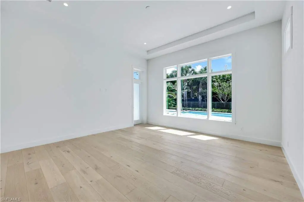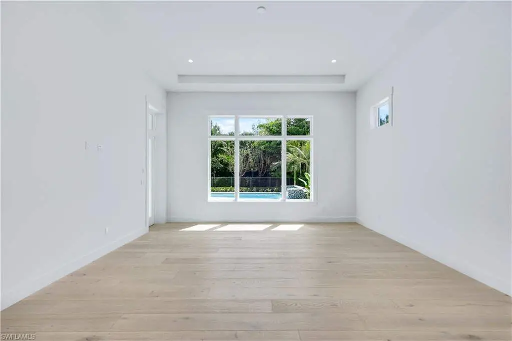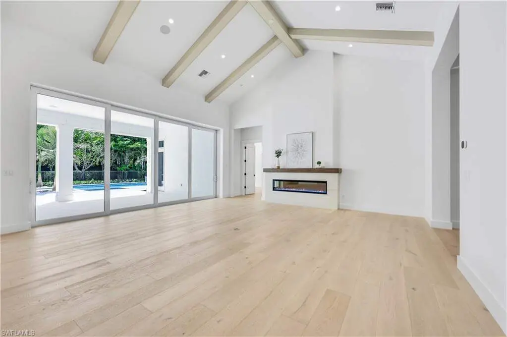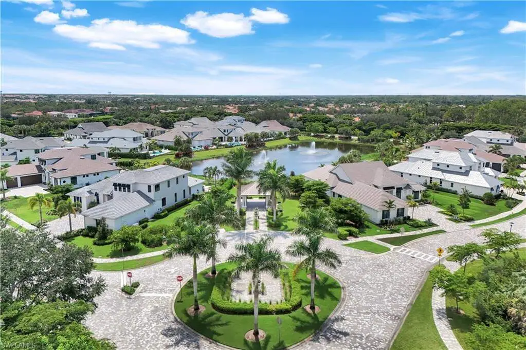 Welcome to your new oasis in the heart of Naples, your single-family home nestled in an exclusive enclave of just 27 residences, offering a warm sense of community. This gated haven provides the perfect blend of privacy and convenience, featuring charming brick-paved streets and sidewalks, all enhanced by neighborhood street lighting and lush landscaping. One-story spacious great room living offering a main suite with a luxurious bathroom featuring a soaking tub, oversized shower, and separate vanities. Two guest suites, a den, and a third guest suite with a private entrance from the lanai, where your guests enjoy a spacious, quiet space with a custom bar, quartz countertop, sink, and beverage center. The home boasts high-volume ceilings that fill the space with natural light, highlighting the stunning great room, which is adorned with wood-beam ceilings, a custom bar built to include a wine cooler, a glass cabinet tower, and free-floating wood shelving with lighting, and a 74" linear fireplace. Culinary enthusiasts will revel in the superior kitchen equipped with Viking appliances, including a refrigerator, dishwasher, convection speed oven, gas range top with hood vent, all beautifully complemented by white wood cabinetry with glass doors, and quartz countertops with waterfall edges. A GE front-load washer and dryer add to the convenience of modern living. Enjoy the tranquility of a private garden setting, or entertain with ease in your outdoor spaces featuring an outdoor kitchen with a gas grill, electronic roll-down screens, a refreshing swimming pool, and spa. Seamless convenience awaits with proximity to Seed to Table, Gulf beaches, Mercato, and Southwest Florida International Airport, making every day a celebration of leisure and luxury within The Promenade's embrace. Don't miss your chance to experience the unparalleled lifestyle this estate provides in beautiful Naples.