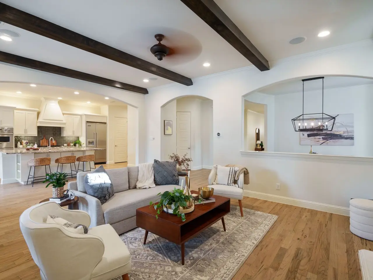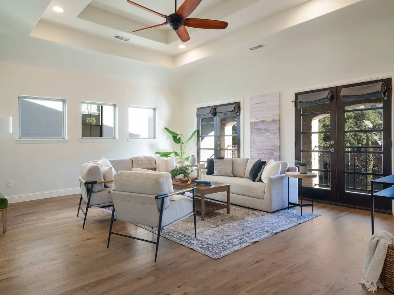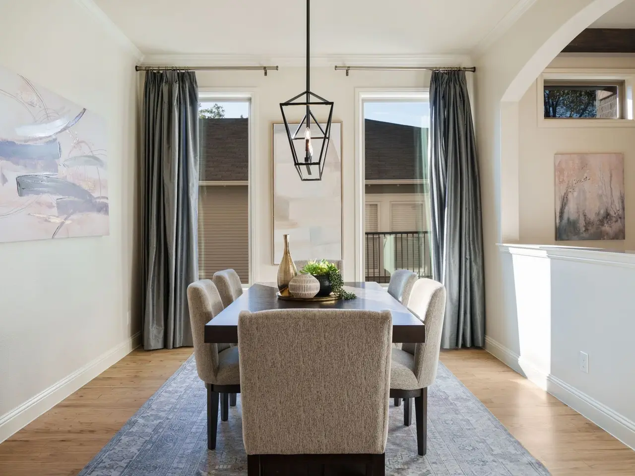 Located on a quiet street in Lakewood Heights near Tietze Park, this beautifully designed home blends timeless sophistication with modern comfort. With plenty of space and thoughtful touches, it offers a warm and inviting environment for both everyday living and weekend fun. Sunlight floods the open-concept living and dining areas, highlighted by freshly refinished light wood floors. Featuring four spacious bedrooms, an office, a media room, and multiple living spaces, there's room for everyone to relax and recharge. The spacious kitchen is outfitted with Viking commercial-grade appliances and plenty of counter space, making meal prep a breeze. Each bedroom has its own en-suite bath for added privacy and comfort. Outside, enjoy your own backyard oasis with a covered patio, a beautiful, custom-built pool with water features, and a turfed yard. Jellyfish Lighting around the outside of the house creates a versatile ambiance, whether youre celebrating holidays or the changing of the seasons. This charming home is a fantastic retreat for exploring the Lakewood area and creating new memories.