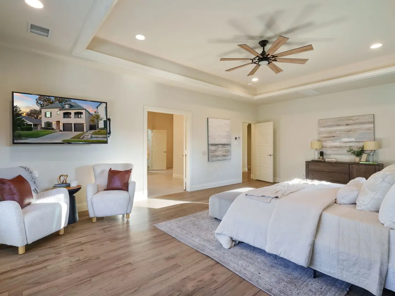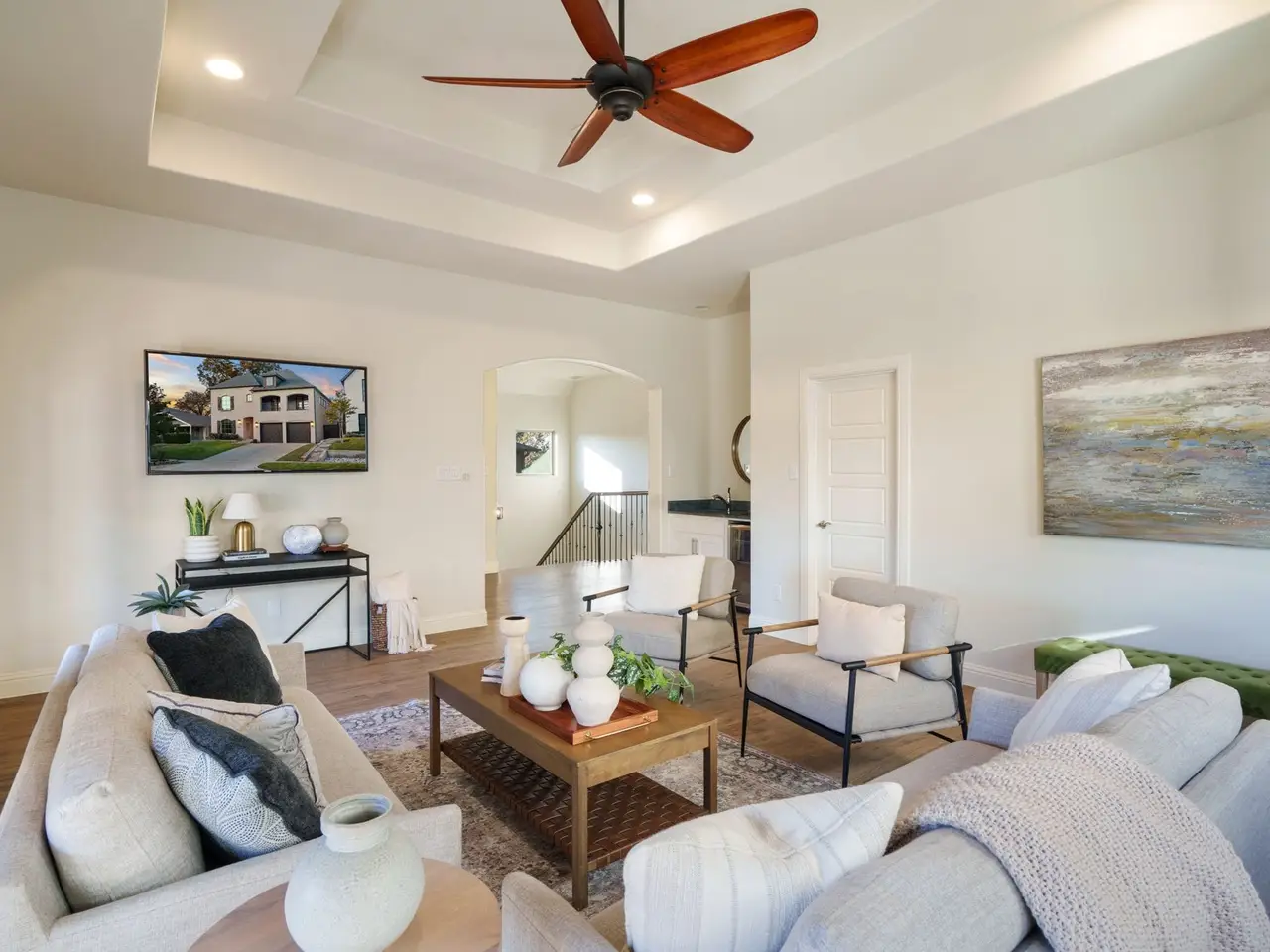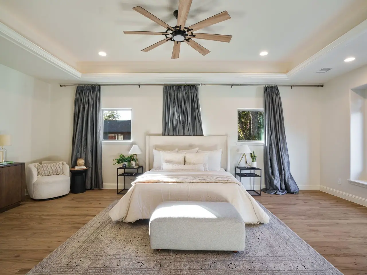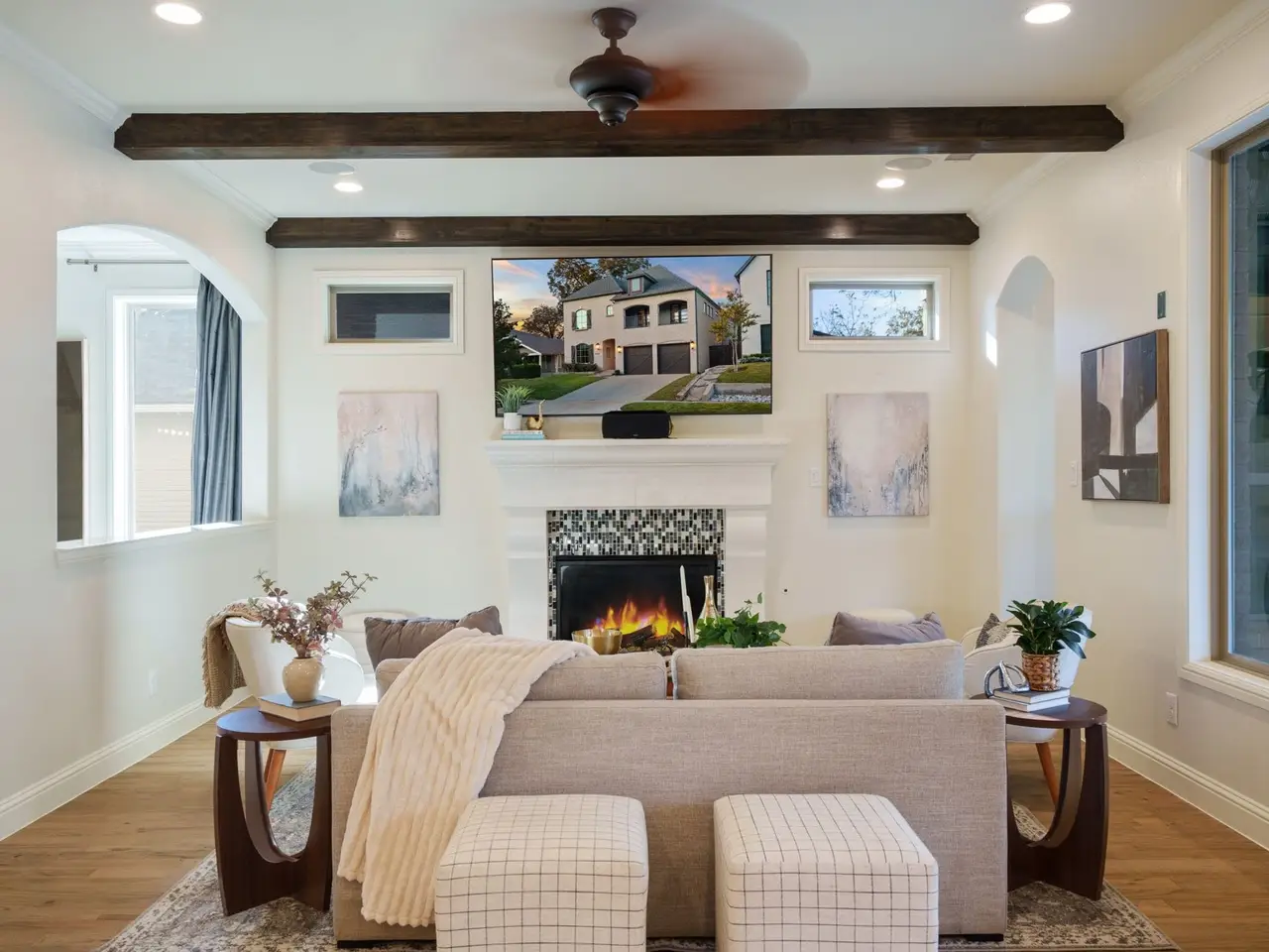 Located on a quiet street in Lakewood Heights near Tietze Park, this beautifully designed home blends timeless sophistication with modern comfort. With plenty of space and thoughtful touches, it offers a warm and inviting environment for both everyday living and weekend fun. Sunlight floods the open-concept living and dining areas, highlighted by freshly refinished light wood floors. Featuring four spacious bedrooms, an office, a media room, and multiple living spaces, there's room for everyone to relax and recharge. The spacious kitchen is outfitted with Viking commercial-grade appliances and plenty of counter space, making meal prep a breeze. Each bedroom has its own en-suite bath for added privacy and comfort. Outside, enjoy your own backyard oasis with a covered patio, a beautiful, custom-built pool with water features, and a turfed yard. Jellyfish Lighting around the outside of the house creates a versatile ambiance, whether youre celebrating holidays or the changing of the seasons. This charming home is a fantastic retreat for exploring the Lakewood area and creating new memories.
