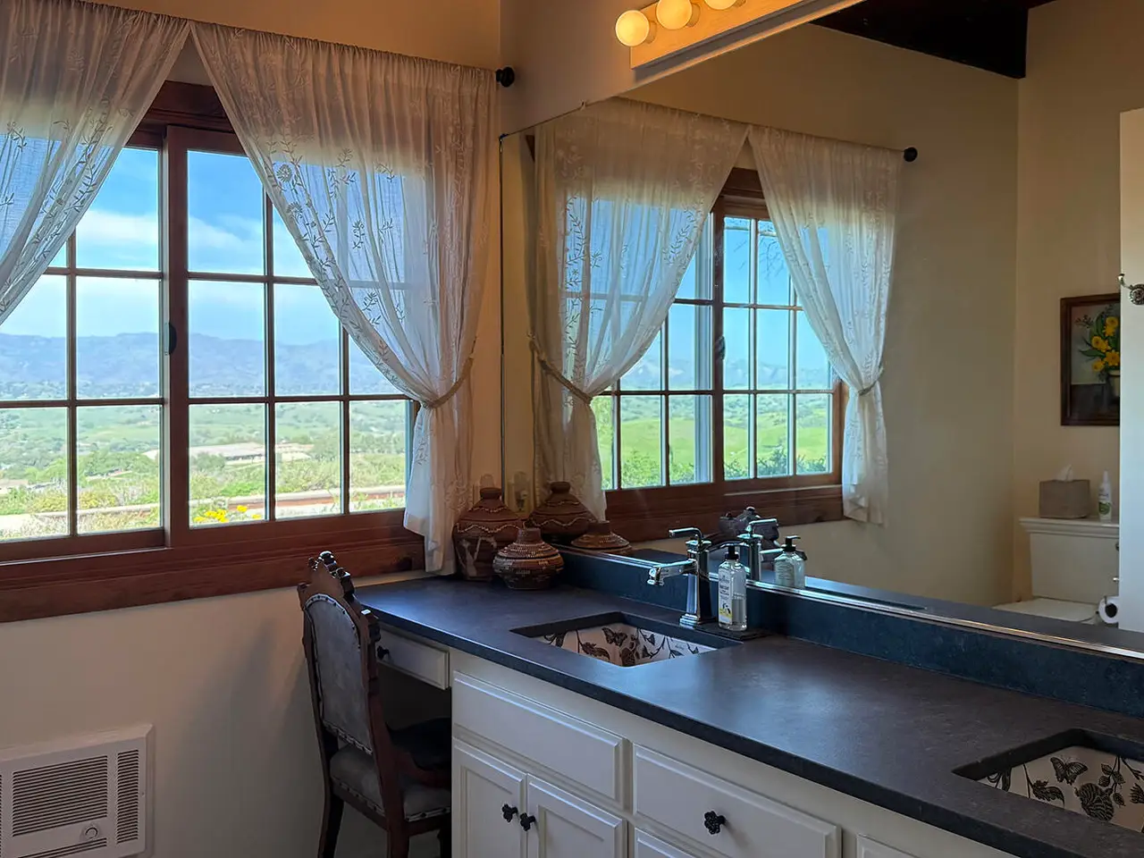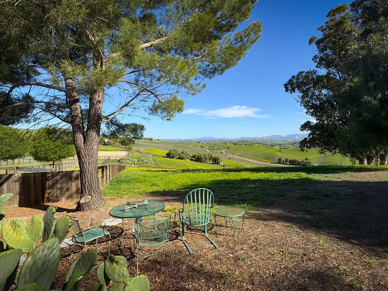 Tucked away on 20+/- acres of rolling hills in the enchanting Santa Ynez Valley, 2852 Tapadero is more than a home--it's an experience. This peaceful, private estate offers a lifestyle immersed in natural beauty, comfort, and creative inspiration. From the moment you arrive, you're welcomed by panoramic views of world-renowned vineyards, rolling hills, and endless skies that stretch from brilliant sunrises to awe-inspiring starlit nights. The centerpiece of this estate is a tastefully renovated 3-bedroom, 2.5-bath residence, thoughtfully designed to showcase the breathtaking vistas from every room--including the bathrooms and laundry. The open-concept living and dining spaces flow effortlessly into the chef's kitchen, while a cozy stone fireplace anchors the spacious living room. A hidden "secret bookshelf" door opens to a versatile library/music/entertainment room, perfect for quiet reflection or lively gatherings. Step outside and you'll discover expansive outdoor living spaces ideal for entertaining or unwinding. Shaded porches, pergolas, and a charming oyster-shell bocce court surrounded by a fragrant kitchen-herb garden, provide the perfect setting for casual evenings with friends. An impressive private orchard with more than 100 fruiting trees invites you to savor each season's harvest. For those with an equestrian heart, the estate includes a beautiful private barn with indoor/outdoor entertaining areas, three horse stalls, and scenic paddocks that lead directly to over 10 acres of fenced pastureland. The professional-grade equestrian arena (approx 220' x 85'), with its sweeping mountain and vineyard views, is among the finest in Santa Barbara County. Wander through the manicured gardens and orchard to reach a secluded meditation/yoga/writing studio, perched with vistas over Los Olivos and framed by mountains. Whether you're a nature lover, writer, artist, birdwatcher, or snowbird seeking serenity, this sanctuary is designed to spark creativity and peace. The estate also features a 2017-built 2-car garage designed in harmony with a 3-car carport. Every structure and space on the estate has been meticulously renovated and remodeled as of 2025 to blend timeless charm with modern comfort. The Ultimate Location While completely private, the property is just five scenic minutes from the heart of Los Olivos, a charming town brimming with tasting rooms, fine dining, and eclectic shopping. Enjoy a memorable evening at The Inn at Mattei's Tavern, (an Auberge resort) beloved since the 1880s. The vibrant communities of Santa Ynez, Los Alamos, and Solvang are also nearby, each offering their own flavor of history, culture, and small-town magic. Santa Barbara's beaches, theaters, boutiques, and airport are a beautiful 45-minute drive through the coastal mountains. Whether you're dreaming of a peaceful retreat, a vineyard escape, an equestrian haven, or simply a home where every view stirs the soul 2852 Tapadero is that rare place where luxury, nature, and inspiration converge.