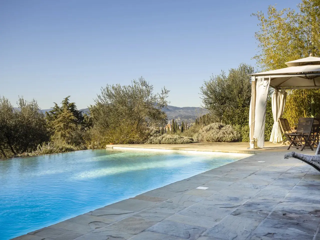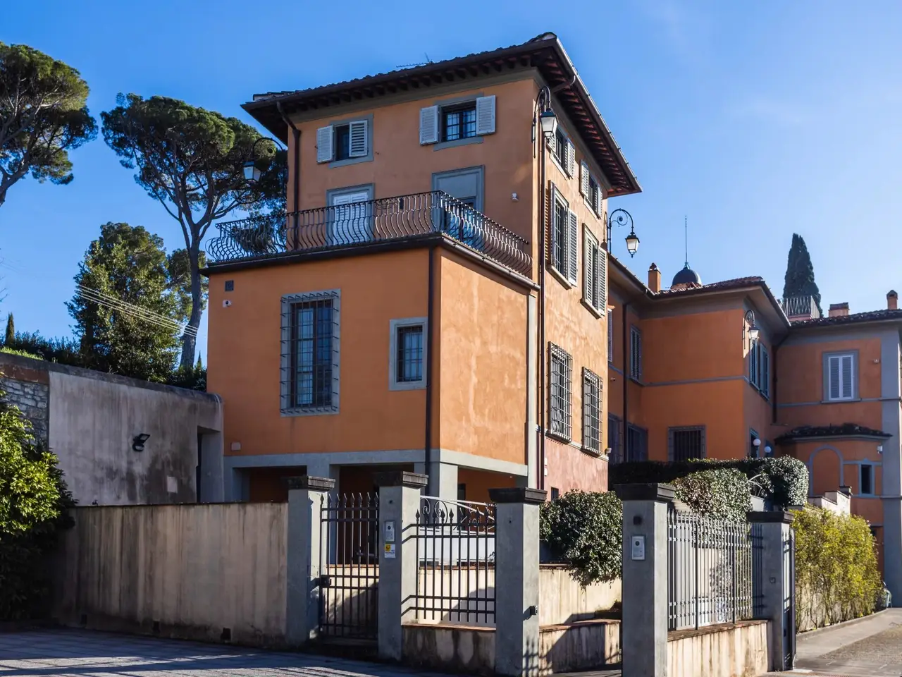 This magnificent property for sale dates back to the 15th century, it is just 3 km from the centre of Florence and offers a panoramic view over the city and Brunelleschi's awe-inspiring dome. This historic villa has been recently finely renovated and brought back to its old splendor. It has a total surface of 1,300 m2 divided into two apartments. It includes the main entrance, some state rooms which feature rich materials and prestigious details, a well-equipped kitchen, eleven bedrooms and fourteen bathrooms. This estate's rooms have been designed with great attention to detail using finishings of the highest quality. Its marble and stucco decorations, the choice of very high-quality materials combined with the most modern technologies give added value to this magnificent estate, which is charming but also safe and comfortable. This property is surrounded by a luxuriant, 5,000 m2 terraced garden planted with rich olive trees. Here you can find a marvellous infinity edge swimming pool from which you can enjoy a breathtaking view. This dream homeis also equipped with some typically Tuscan basement rooms (tavernas) and cellar. This villa for sale enjoys an absolutely private, quiet and exclusive position with a magical view over Florence. Internal surface: 1,300 m2 External surface: 5,000 m2 Main villa 11 bedrooms 14 bathrooms Infinity edge swimming pool - Terraced garden - Cellars Tavernas Florence city centre km 3