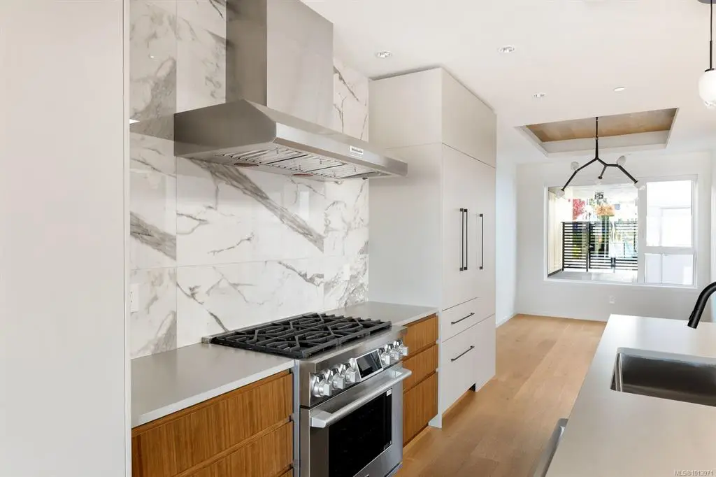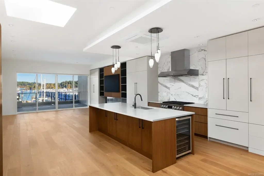 Experience Coastal Elegance at the Sea Dweller, a rare oceanfront masterpiece located in the new Harbour Haven Development. This exquisite 4-bed, 5-bath residence spans 3,202 sq.ft of impeccably designed living space, offering breathtaking views of the marina & coastline. Discover an open-concept layout enhanced by 10-foot ceilings, floor-to-ceiling windows, skylights, gas fireplace, & wide-plank hardwood flooring. The chef-inspired kitchen features custom millwork, quartz countertops, & top-of-the-line SS appliances. This home offers the ultimate in comfort & privacy w/ two lavish primary suites, each boasting spa-like ensuites. Three expansive balconies invite seamless indoor-outdoor living—perfect for entertaining or simply savoring the panoramic vistas & ideal sun exposure. Additional features include a double garage, private elevator, & a 1-bed, 1-bath suite. Located just steps from the marina, beaches, restaurants & Sidney by the Sea.