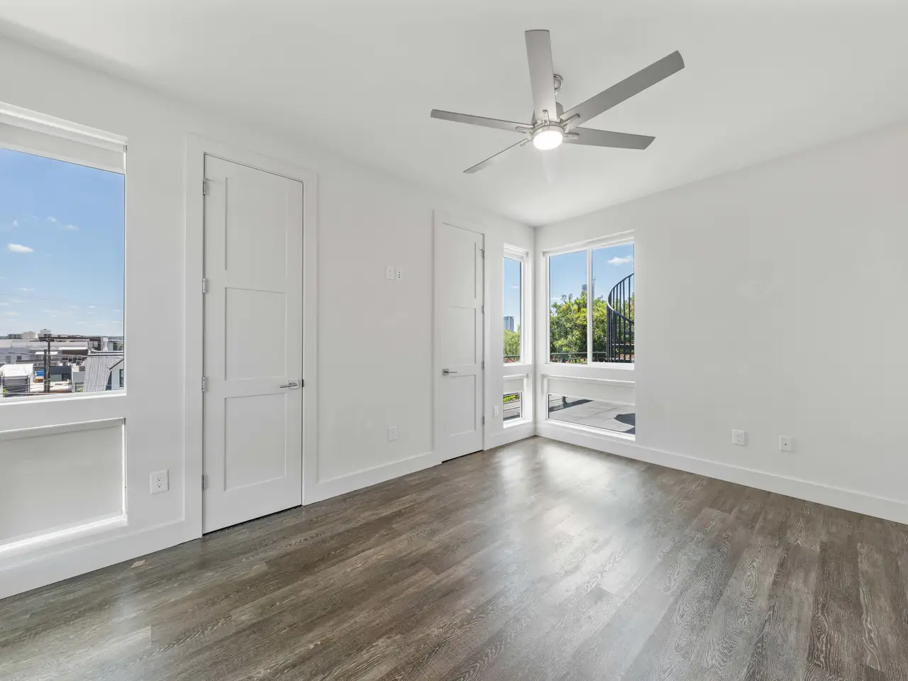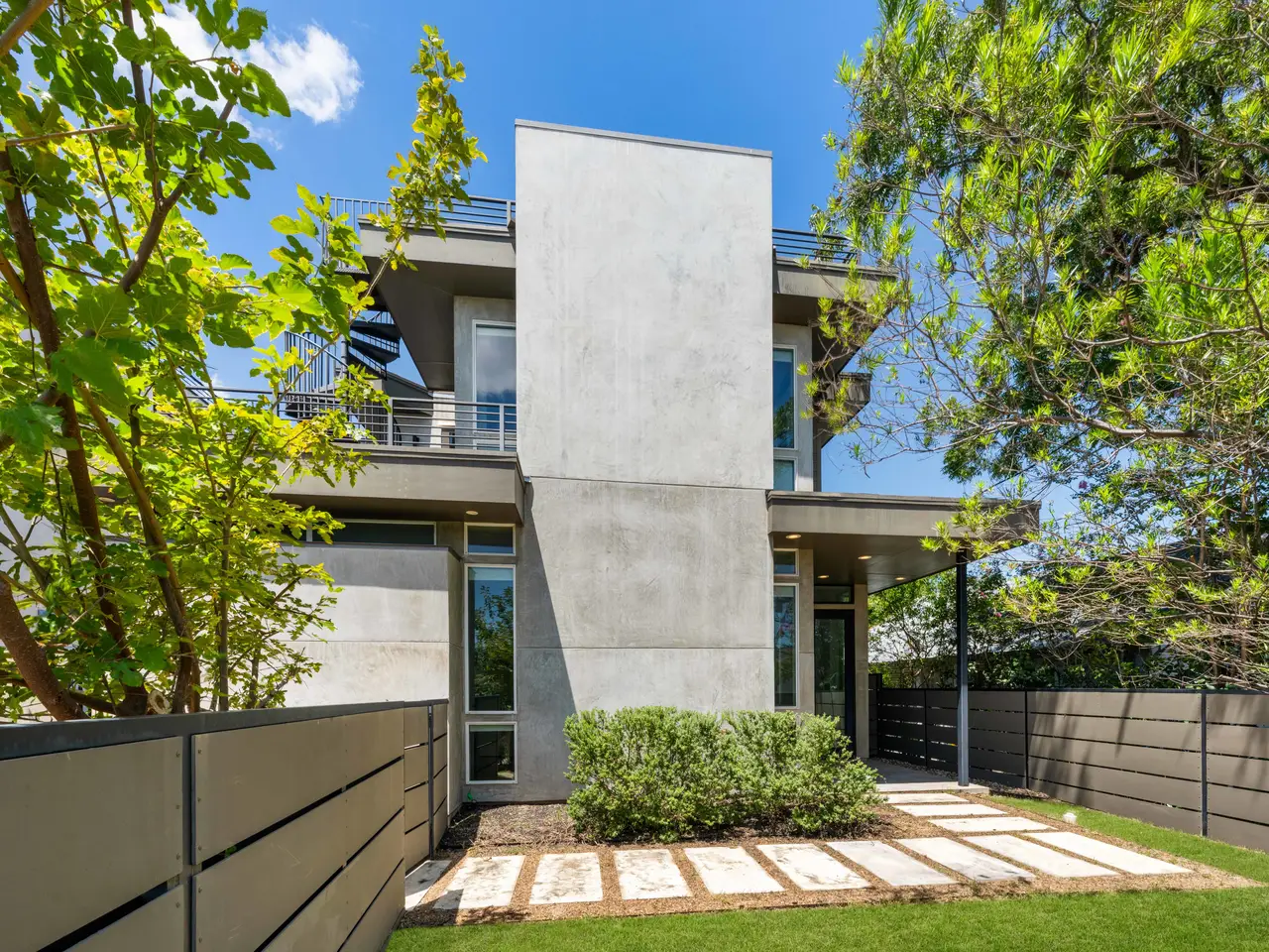 Modern luxury in the heart of East Austin! This 3 bed, 2.5 bath architectural gem offers 2,096 square feet of stylish living space, high ceilings, floor to ceiling windows, and an open-concept design. The gourmet kitchen features a waterfall island, custom cabinetry and premium appliances. A designer glass tile backsplash and sophisticated lighting solutions create an atmosphere of refined modernity, while the adjoining dining area, crowned with a crystal pendant chandelier, offers the perfect setting for elegant entertaining. The primary suite stuns with a spa-style wet room, marble double vanity, and oversized walk-in closet. Upstairs there are 2 bedrooms with views of downtown, a full bathroom, plus additional flex area that can be used as office space or additional living area. This home has multiple outdoor living spaces where you can unwind privately in the lush courtyard, under the covered patios, or take the spiral staircase up to the third story terrace for the beautiful panoramic views of the Austin skyline. The detached climate-controlled garage includes a full guest suite above (an additional 711 sqft) that is perfect for rental income, multigenerational living, or a private home office. This vibrant East Austin address sits in an educational hub, just moments away from the historical Houston-Tilloston University and minutes from the University of Texas at Austin campus. Walkable to highly rated shops, restaurants, coffee, and parks. A rare blend of elegance, flexibility, and location - don't miss this one! Property sold “As-is.” Buyer and/or buyer’s agent responsible for verifying all pertinent information deemed relevant by the prospective buyer, including but not limited to square footage, acreage, utilities, taxes, zoning, permitting, condition, school zones, HOAs, etc.