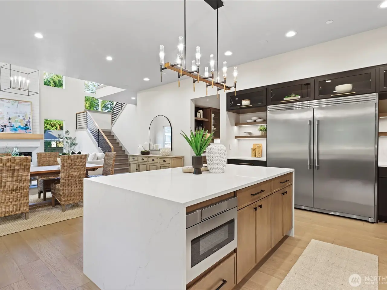 Hamish Anderson Custom Homes, renowned for Architectural Digest-worthy estates, unveils a limited-edition showcase home, Kinsale. Beyond its commanding street appeal, this design-forward NW Craftsman layers warmth, light & individuality on a rare, oversized level cul-de-sac lot. Relax in rockers w/front-row seats to bikes, trikes & sidewalk-chalk creations. Soaring 2-story great room centers on a dramatic cast-concrete fireplace, while the entertainer's kitchen boasts a 66 refrigerator/freezer wall w/LED-lit shelving, Wolf range & quartz waterfall island. Formal dining via wet bar, office, vaulted outdoor living w/gas fire table, bonus w/snack bar & wine chiller, Control4 lighting +audio. Five bdrms incl. 3 ensuites + main-flr guest.