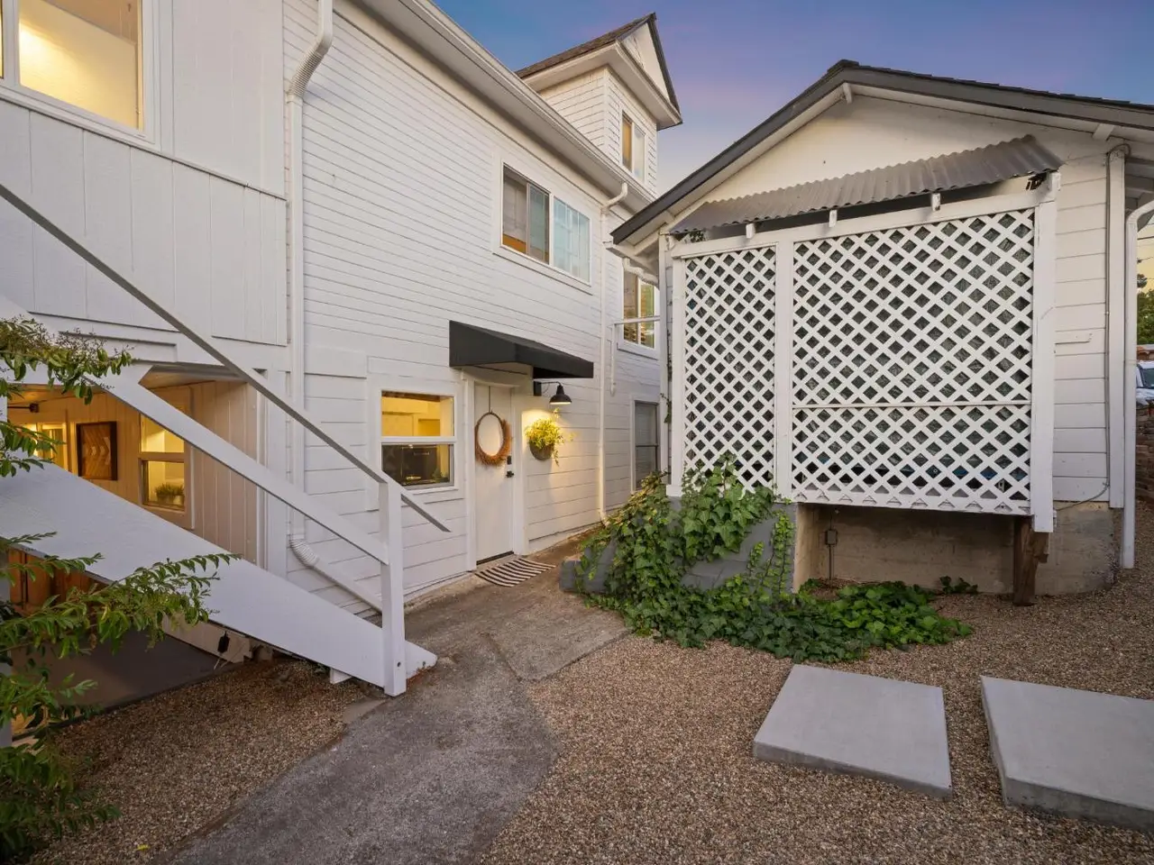 Location is everything and this is no exception! Beautiful, turn-key home with attached guest unit + 2 driveways! Oakhill-Brewster charmer is full of personality and thoughtful design choices + extensive upgrades. Kitchen has luxe appliances including a Thermador range + hood. Modern Danish gas fireplace adds a cozy vibe + Mitsubishi heat pump provides efficient heating + cooling upstairs. Heated floors in the primary bedroom and 2 bathrooms. The home can be lived in as a single level, with primary bedroom conveniently located on the main floor. Numerous smart features plus a Tesla charger. Elfa closet system, new carpet, and shiplap accents. The guest unit, complete with a private entrance, can be used for visiting guests, extended family, or as a home office or creative space. Even has a proven 4+ year track record of Airbnb income (income statements available). Fully fenced outdoor space has professionally landscaped front yard with drip irrigation + landscape lighting, 2 driveways with room for RV + off-street parking for 6+ cars! Sunny, private backyard plus covered patio. Views from upstairs bedroom + unbeatable location close to downtown Petaluma's locally loved restaurants, shops, and cafes.
