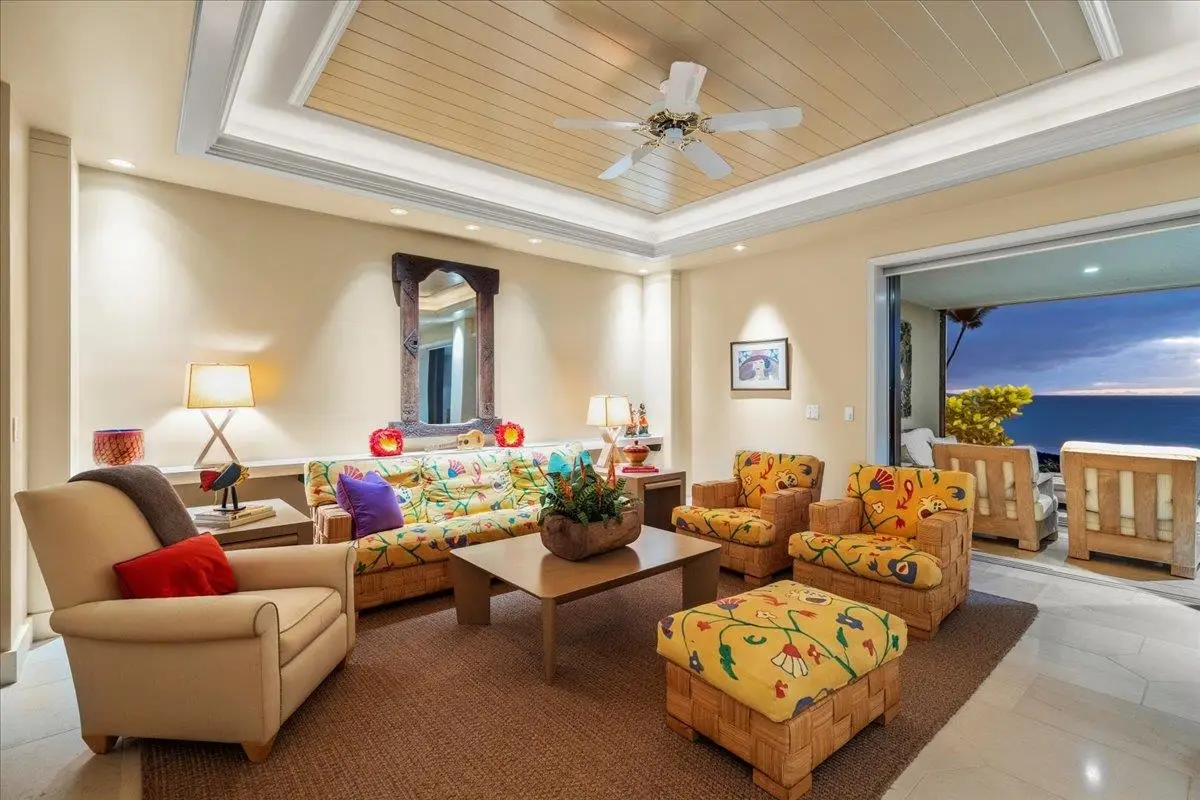 Introducing Makena Surf A103, the only original three-bedroom home in this iconic oceanfront community. This single-level residence offers 3,415 sq ft of interior living space plus an additional 900+ sq ft of covered lanai, all set against spectacular ocean views along Makena’s pristine coastline. Located at Makena Surf, one of Maui’s premier beachfront properties, A103 blends privacy, space, and an unbeatable location. Designed with classic Hawaiiana influence, the home is accented by a curated collection of vintage island artwork that adds warmth, character, and a sense of place throughout. The expansive great room opens to a generous ocean-facing lanai ideal for sunrise coffee, sunset dining, whale-watching season, and year-round indoor-outdoor living. The eat-in kitchen offers abundant counter space and storage. Entertain in the dining area, that is perfect for hosting family and friends after a day on local beaches or exploring all that Maui has to offer. Each bedroom includes its own ensuite bathroom, providing comfort and privacy for guests. The primary suite features beautiful ocean views and direct access to a private lanai. Set on 15 acres of gated, low-density oceanfront land, Makena Surf offers resort-style amenities including two pools, pickleball and tennis courts, tropical landscaping, beach access, and some of Maui’s best snorkeling right out front. This is Makena living at its finest, where ocean, luxury, and location come together in one extraordinary home.