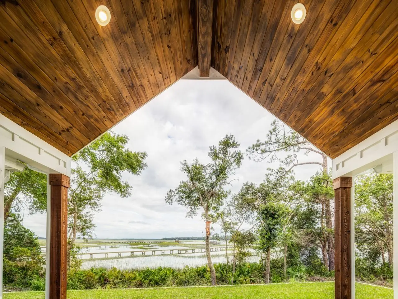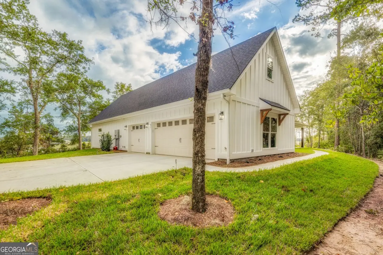 Nestled on a serene peninsula at the end of a quiet cul-de-sac, this brand-new Craftsman-style home at 87 Lighthouse Way in Woodbine, GA 31569 offers a tranquil retreat with approximately 400 feet of private waterfront along this deepwater property on Crooked River. Priced at $824,900, the 2,200 square-foot residence features three bedrooms and two-and-a-half bathrooms, designed with a split floor plan that emphasizes comfort and flow. The property includes dock rights, allowing for the addition of a personal dock, pavilion, and boat lift, with a seawall just steps from the marsh and river, inviting peaceful mornings watching the water. Inside, the home exudes quiet luxury with cathedral ceilings accented by exposed beams in the great room, where a cozy fireplace serves as a focal point. Expansive windows flood the space with natural light, framing captivating river views that blend seamlessly with the outdoors. The gourmet kitchen is a haven for relaxed gatherings, boasting a spacious island topped with granite countertops, stainless steel appliances including a wall oven and cooktop with vent hood, a charming farmhouse sink, and a large walk-in pantry. The master suite provides a private sanctuary, complete with river-facing windows, a trey ceiling, an expansive walk-in closet, and a spa-like bathroom featuring a separate tiled shower with rain head, dual vanities with marble countertops and a seated vanity area, a water closet, two linen closets, and pre-wiring on a dedicated 20-amp circuit for a potential sauna. On the opposite side, two additional bedrooms each offer walk-in closets, ensuring ample space for family or guests. Thoughtful details enhance the home's efficiency and versatility, including a three-car garage, abundant attic storage with plywood flooring and blown insulation for optimal temperature control, a 400-amp electrical panel with a separate 100-amp sub-panel for future additions like a pool, dock, or hot tub, dedicated breakers for a whole-home generator and electric vehicle charger, separate dedicated 20-amp circuit for a future irrigation well, and a sprinkler system to irrigate all of the brand new Saint Augustine sod. The septic system includes a pump and alarm for reliable operation. Entry is through a welcoming foyer and front porch, while the back patio, with its hardwood ceilings and pre-wiring for a TV, extends the living space outdoors in a subtle, elegant manner. Situated in the secure, gated community of Misty Harbor, residents enjoy access to well-maintained amenities such as tennis courts, a playground, swimming pool, picnic areas, a community room, boat and RV storage, a marina, boat launch, and pavilions with fire pits, all fostering a sense of calm community living. Conveniently located just 20 minutes from Kings Bay Submarine Base, 35 minutes from Jacksonville International Airport and Brunswick, GA, and 50 minutes from Jekyll Island, GA, the property also provides easy deepwater access to Cumberland Island, Fernandina Beach, and the Atlantic Ocean once a dock is built, making it an ideal spot for those seeking a harmonious blend of seclusion and connectivity.